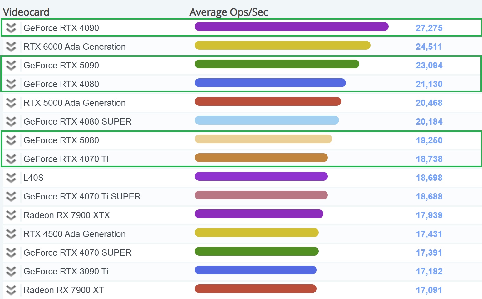 新款 英伟达GeForce RTX 5090在https://www.videocardbenchmark.net/directCompute.html在 PassMark 的 GPU 计算基准测试中名列榜首。GPU 计算是现代计算中必不可少的过程,它可以加强与 CPU 的合作,甚至影响游戏。在这种情况下,统治者仍然是 GeForce RTX 4090以每秒 27,275 次运算(OPS)的成绩遥遥领先。虽然测试样本数量相差悬殊,目前测试的 13GeForce RTX 5090 显卡与前代显卡的 13965 个样本相比,但 Blackwell 显卡的平均得分似乎只会略有波动。RTX 4090 的得分比 RTX 5090 高出 18.1%,而 RTX 5090 只比 RTX 4080 高出 9.3%。