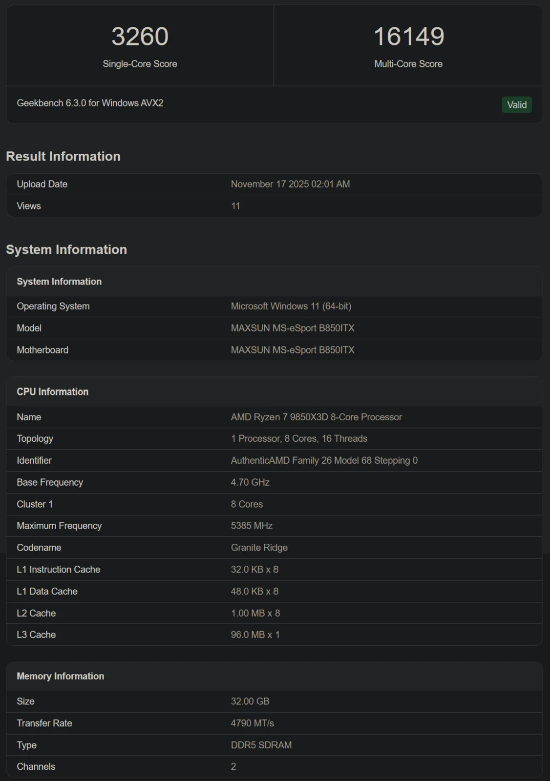 最新的 Geekbench 列表确认了 AMD 即将推出的 Ryzen 7 9850X3D.正如预期的那样,它配备了 8 个 Zen 5 CPU 内核和 16 个线程。不过,其提升时钟在两个列表中似乎有所不同。