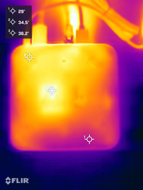 (+) The bottom heats up to a maximum of 36.1 °C / 97 F, compared to the average of 36.3 °C / 97 F