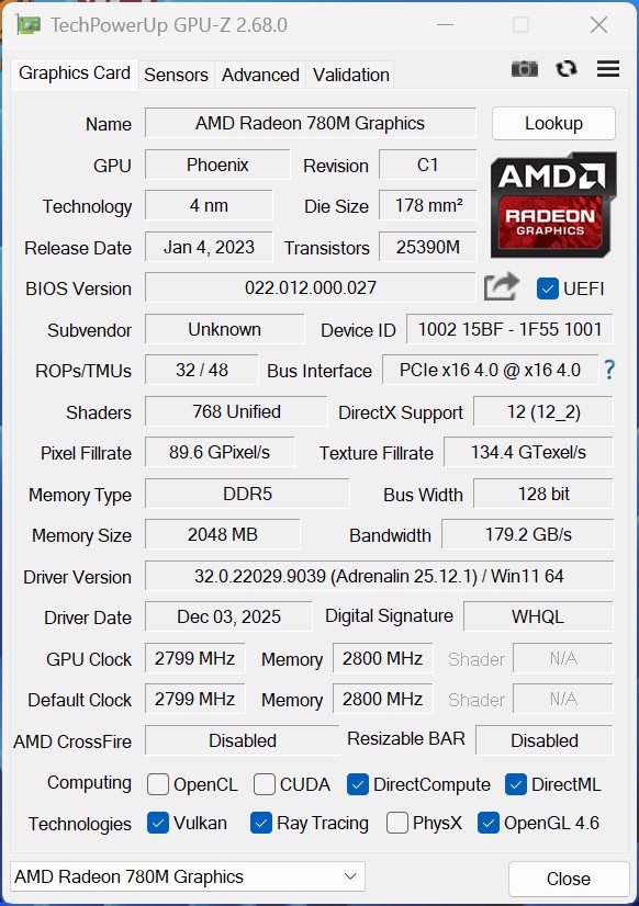 搭载 AMD Ryzen 9 7940HS 的 Geekom A7 Max 依赖于集成的 Radeon 780M 显卡,在我们的评测中,其性能水平相当稳定,但由于只配备了一个内存模块,整体性能受到限制。因此,在合成基准测试中,该系统落后于同等配置的迷你 PC,而在游戏中只能达到有限的可用帧率。iGPU 足以应付简单的游戏场景,但正如预期的那样,A7 Max 无法与配备 RTX 4050 等专用显卡的系统相媲美。