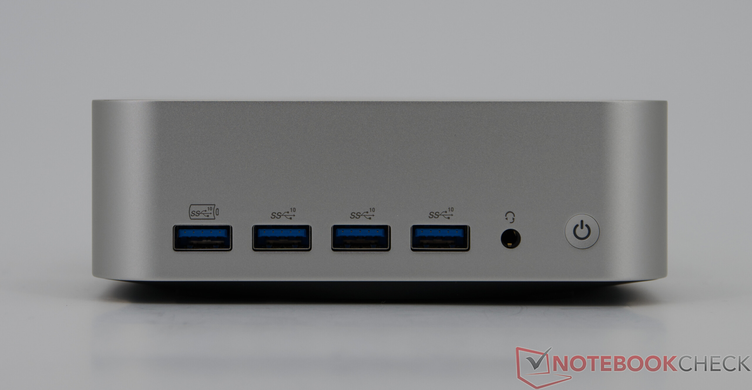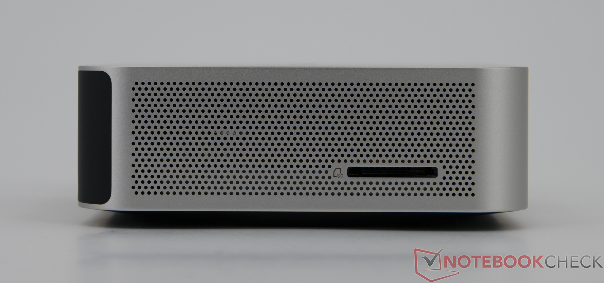 宽大的机身允许广泛的连接:共有 6 个 USB-A 端口,其中 4 个位于前部,后部有 2 个 USB4 端口和 2 个 HDMI 输出。这样,最多可同时操作四台显示器。侧面的快速 SD 读卡器使设备更加完善,而 USB4 可实现高数据传输速率,外置固态硬盘的表现令人印象深刻。