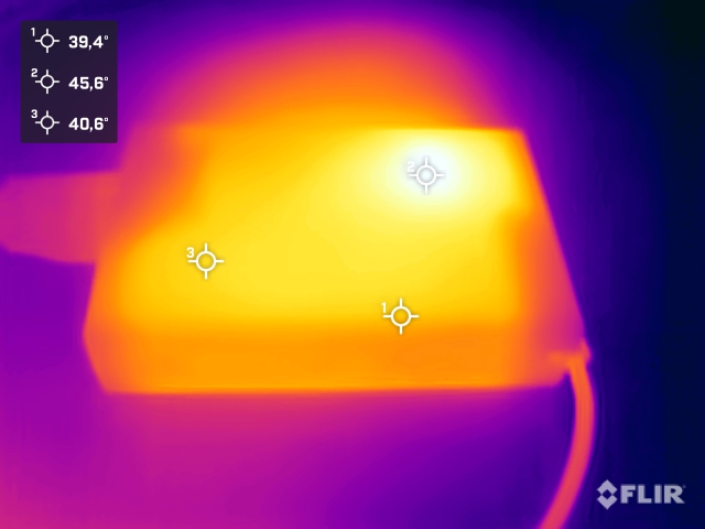 (+) The bottom heats up to a maximum of 36.8 °C / 98 F, compared to the average of 36.4 °C / 98 F