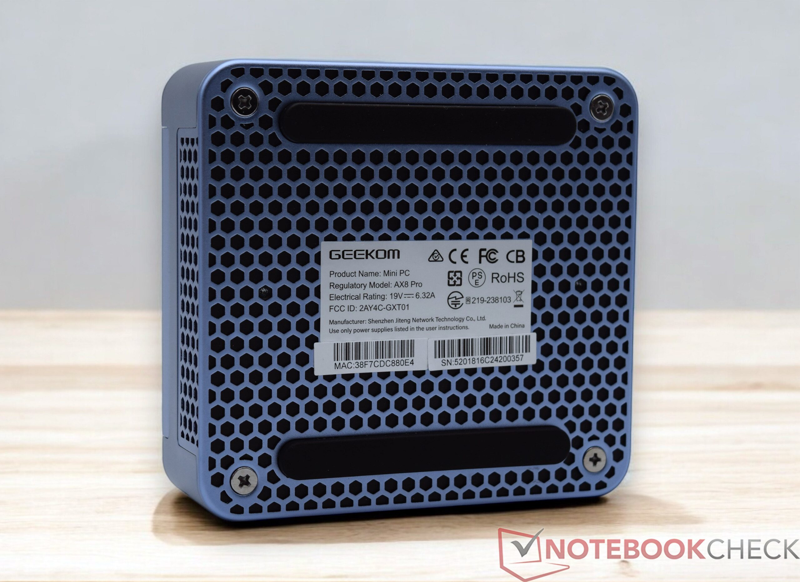 Geekom AX8 Pro 的基础与 Geekom XT13 Pro的外壳相同。 Geekom XT12 Pro.作为 AMD 的对应产品,Geekom AX8 Pro 有机会在同样紧凑的基础上证明自己的性能。这两款设备仅在外观上有所不同,Geekom AX8 Pro 的外壳涂成了蓝色。内部同类产品的银色和白色组件一如既往地质量上乘,配合得天衣无缝。不过,由于材料不同,颜色也有差异。外壳主要由金属制成,但盖子和底部则由塑料制成。我们的测试设备仅重 548 克,非常轻巧,而且 Geekom 的占地面积(11.7 x 11.2 厘米)也非常节省空间。Geekom AX8 Pro 可使用随附的 VESA 支架直接固定在显示器上。