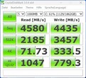 Geekom GT13 Pro 拥有 2 TB 的存储空间,配置出色,可为许多应用程序提供充足的存储空间。它安装了宏碁的固态硬盘,在性能方面令人印象深刻。记录的结果足以让它落后于 傲星 GEM12位居第二。不过,固态硬盘在连续负载情况下难以保持高性能。虽然制造商为固态硬盘安装了被动散热装置,但这终究不足以保持性能稳定。与初始值相比,读取率下降了近 50%。不过,从连续性能图中可以看出,这并非完全失败。宏碁 N7000 的读取速度略低于 4000 MB/s,仍然快于其他微型电脑的大容量存储设备。Geekom GT13 Pro 共可安装两个固态硬盘。不过需要注意的是,第二个 M.2 插槽仅支持长度为 42 毫米的 SATA 固态硬盘。