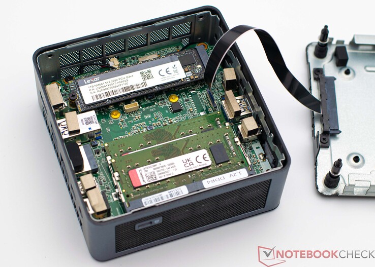 众所周知,Geekom Mini IT11与Intel NUC非常相似。它的所有尺寸--高度、宽度和深度--都完全相同。它的占地面积只有11.7 x 11.2厘米,这在我们测试过的同类产品中是绝无仅有的。与英特尔不同的是,Geekom只提供高配版的Mini IT11,这意味着您可以随时安装2.5英寸的存储设备。