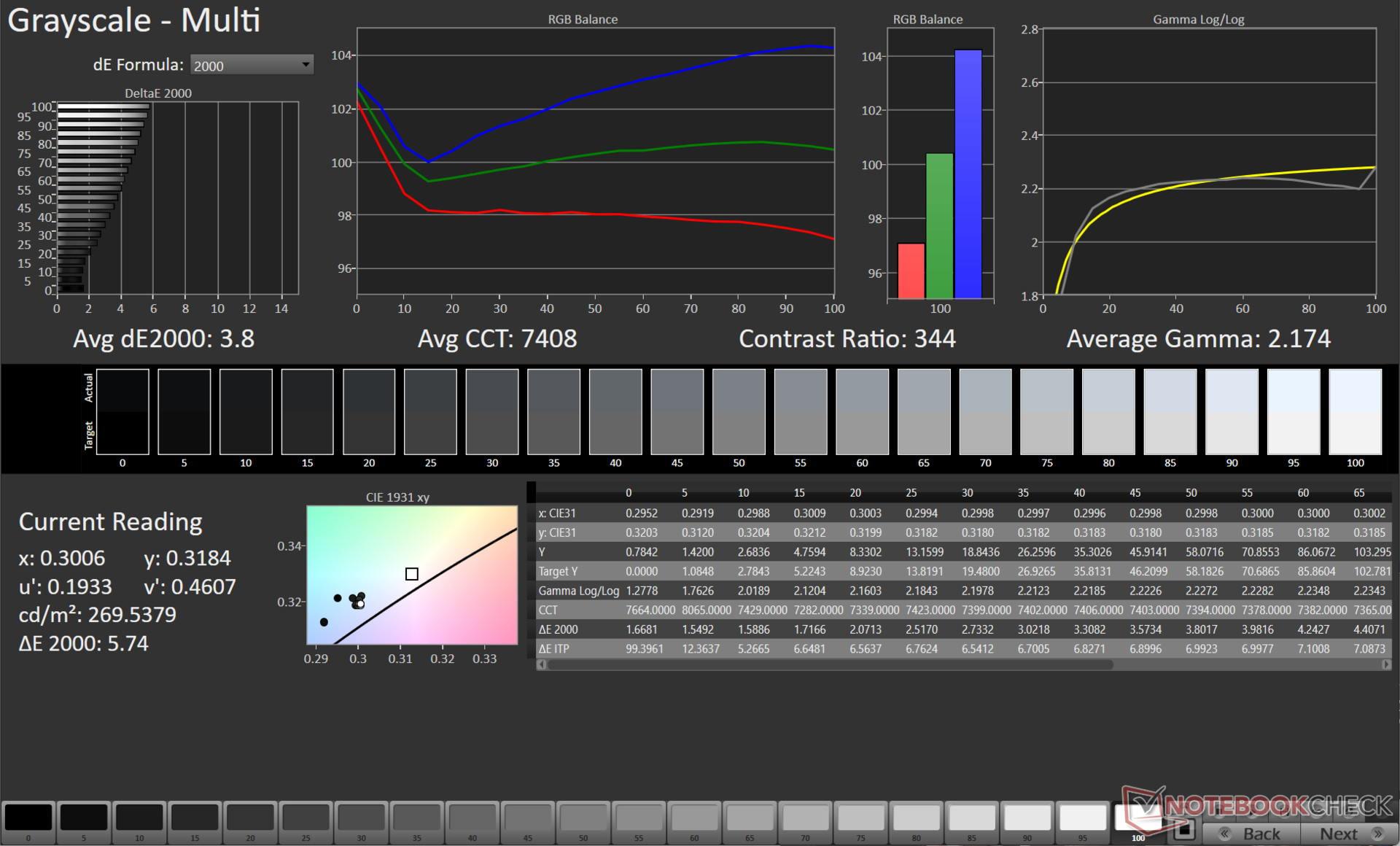 ΔE Greyscale Calman: 3.8 | ∀{0.09-98 Ø5}