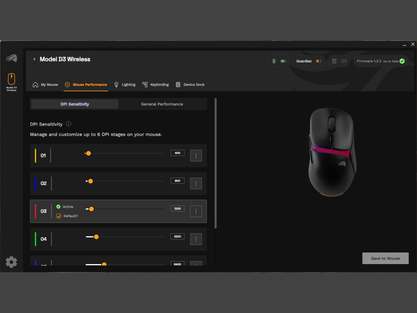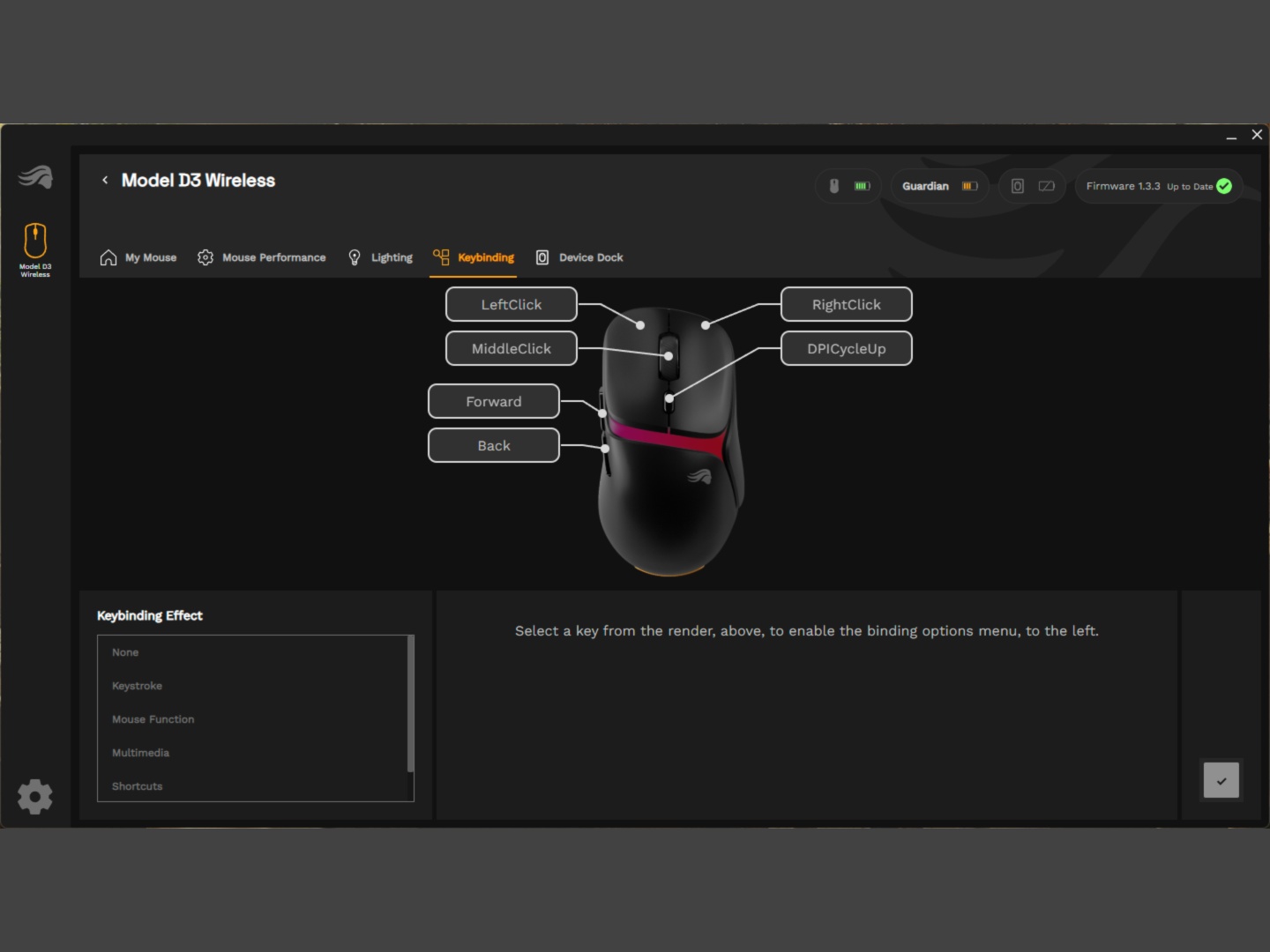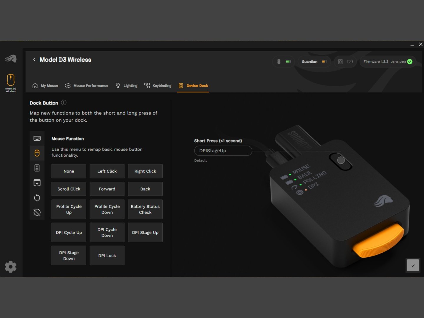 虽然电池续航时间没有达到预期,但 InfinitePlay 系统的运行效果与宣传的一样。如果可拆卸电池电量耗尽,它会自动切换到守护者电池,而不会断开连接。这就给了你足够的时间完成游戏并更换电池。由于每个电池组只有 200 毫安时,因此充电时间也不长。 我们确实注意到,有几次当可拆卸电池没电时,鼠标会关闭,而不是自动切换到守护者电池。手动打开后又会切换到守护者电池,光荣公司正在努力通过固件更新来解决这个问题。大部分情况下,鼠标会在可拆卸电池和内置电池之间自动切换。
