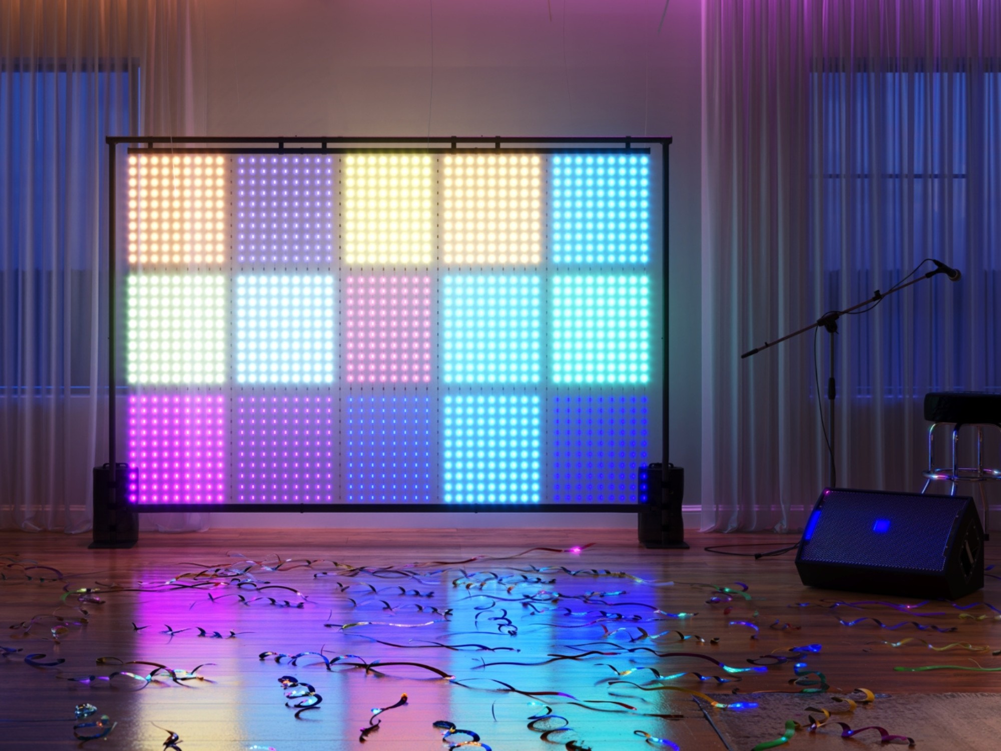 借鉴 Curtain Lights Pro 的设计,壁灯应得益于紧凑的 LED 灯泡配置。它的像素间距为 1.96 英寸/5 厘米,即使在近距离也能清晰辨认物体。动画场景的渲染速度为 35 fps,略高于幕布灵感替代品的 30 fps。