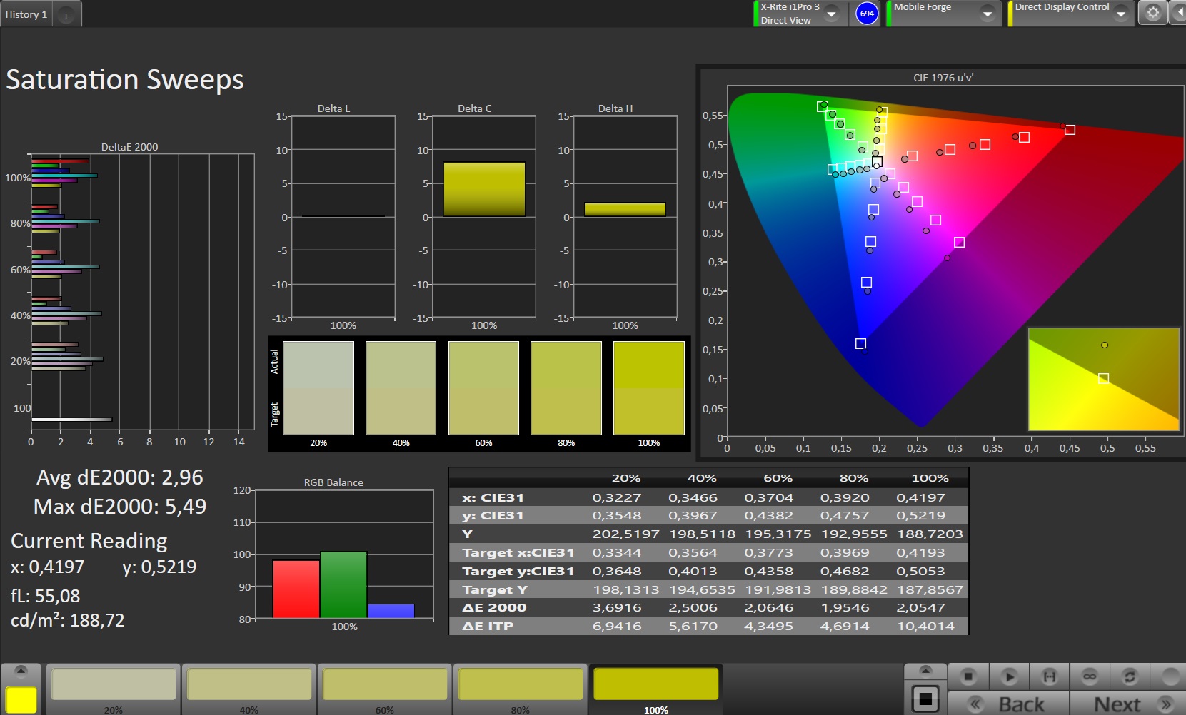 | Colorchecker dE 2000 max. * | 5.97 | 2.9 51% | 1.9 68% | 2.26 62% | 2.8 53% |