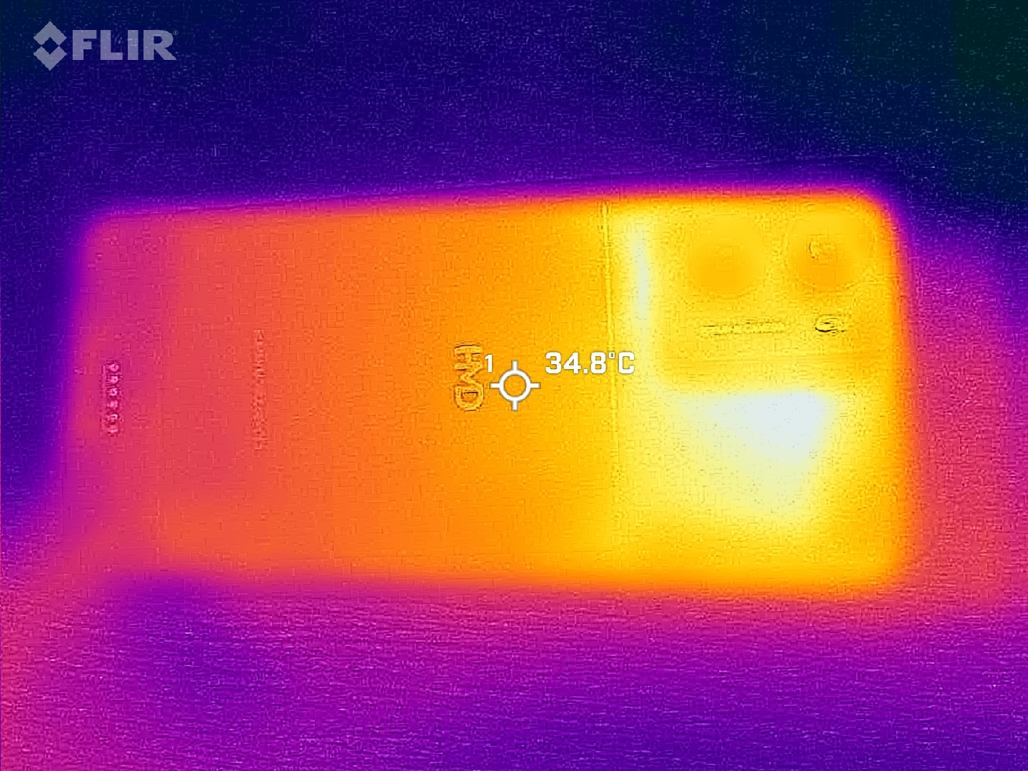 (±) The bottom heats up to a maximum of 42.9 °C / 109 F, compared to the average of 34 °C / 93 F