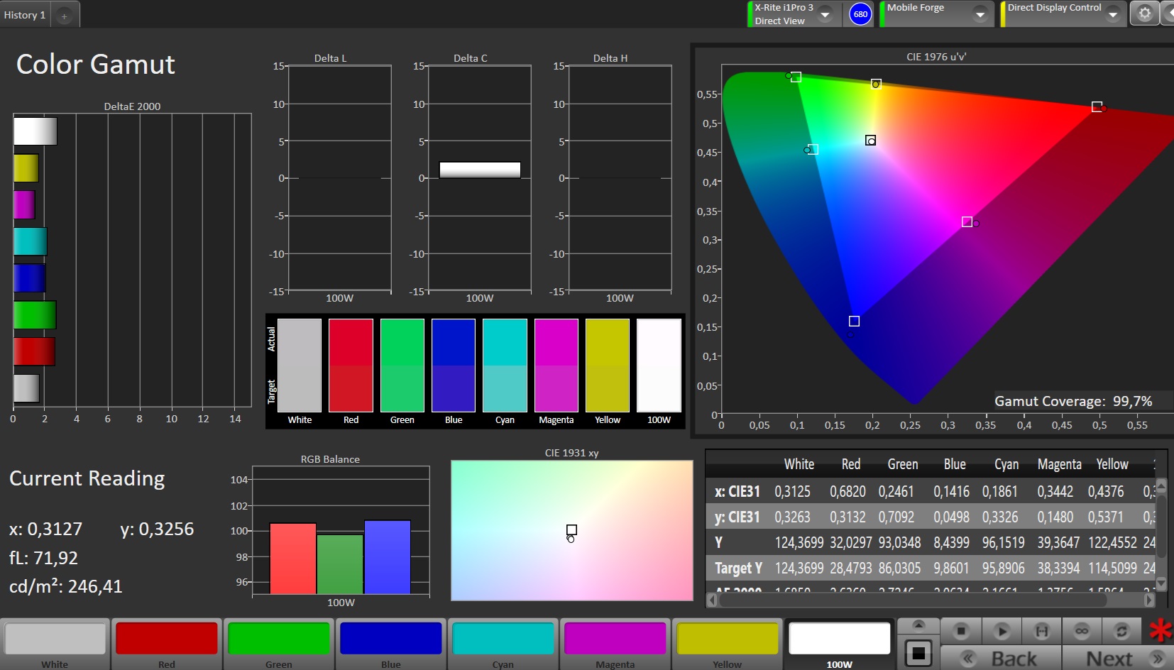 | Colorchecker dE 2000 max. * | 8.37 | 2.3 73% | 4.07 51% | 3.3 61% | 2.6 69% |