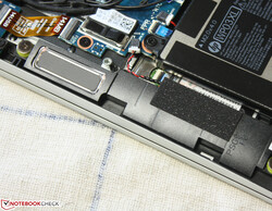 另一个积极的观点是。内存没有被焊接,就像联想 ThinkPad T14s.有两个插座,其中一个被32GB SO-DIMM占用。还有一个插座用于WWAN(M.2 2260),一个用于WiFi模块(M.2 2240),以及一个SSD(M.2 2280)。电池是可更换的,没有胶水。