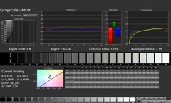 在交付状态下,色彩再现已经非常好,通过校准可以进一步改善,使色彩偏差从1.74下降到1(目标值<3)。此外,灰度也随之更均匀地再现。