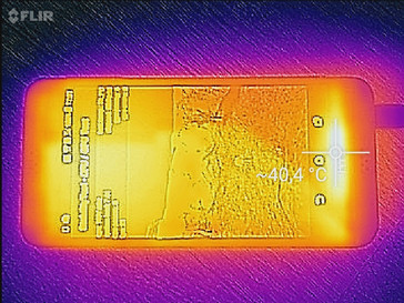 (+) The maximum temperature on the upper side is 37.2 °C / 99 F, compared to the average of 35.2 °C / 95 F, ranging from 21.9 to 247 °C for the class Smartphone.