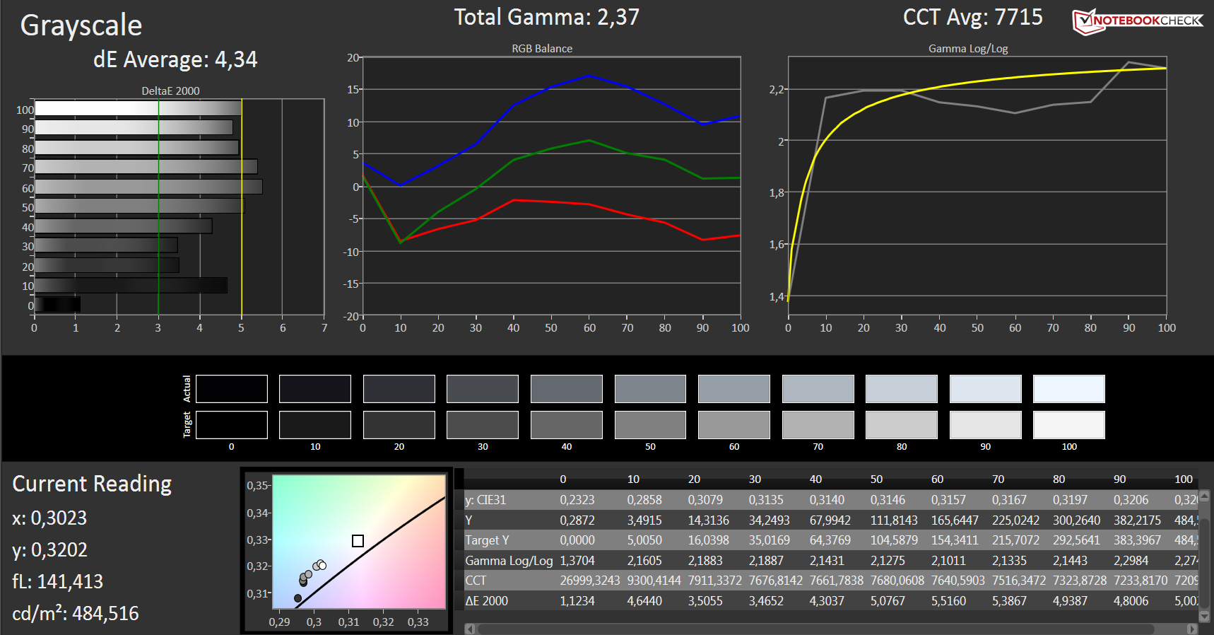 在除这些测量中,我们还检查了色彩管理,饱和度和灰度上介绍的。 RGB平衡显示的蓝色和正偏差稍微弱明显的红色,整体画面是有点太爽了。但是,这是不是一个大的批评,因为是非常小的偏差。在设置中有没有调整的可能性。最新的三星智能手机提供这样的功能在谷歌Android设置。主观演示文稿和图像的清晰度留下了积极的印象。