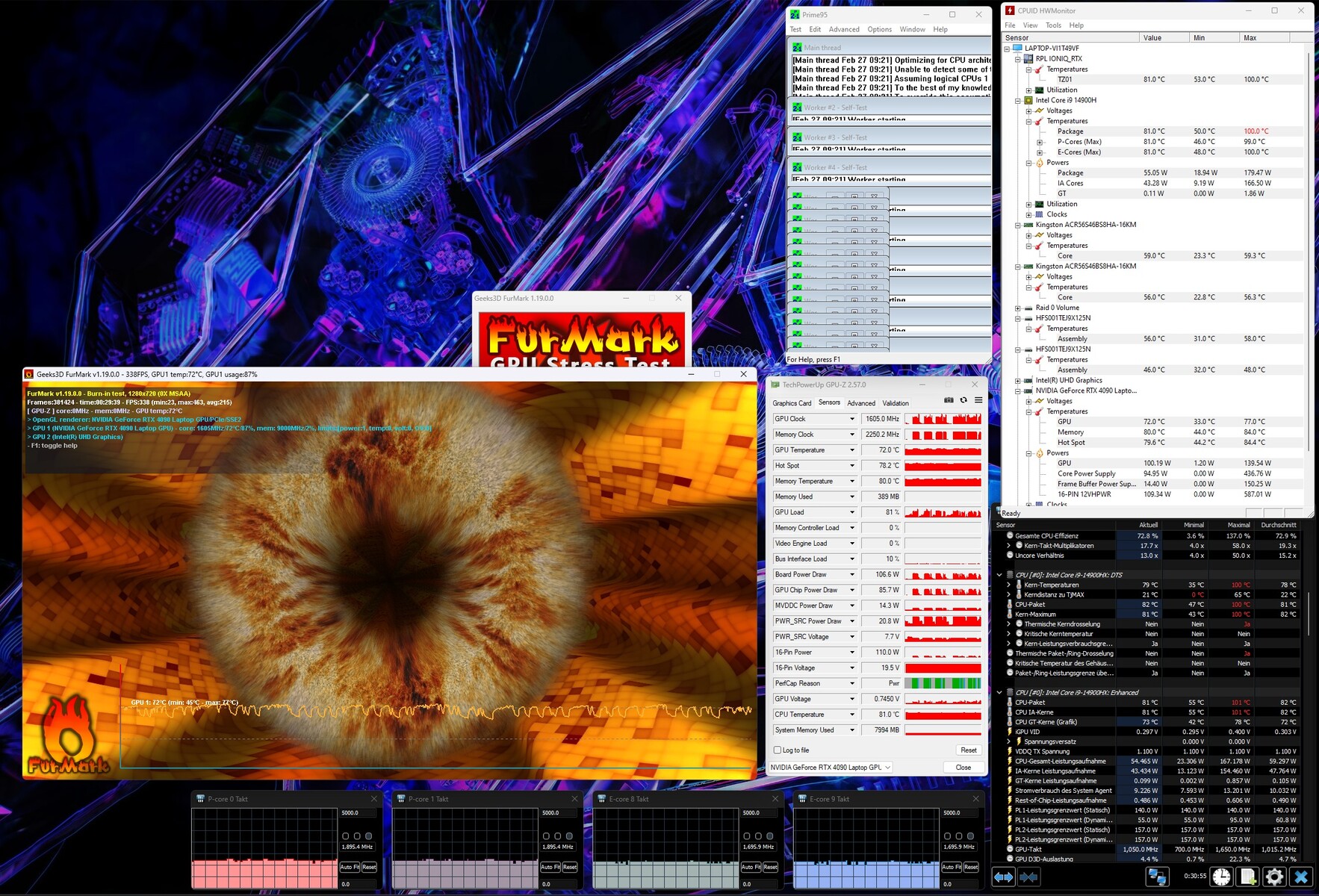 性能方面,其 酷睿 i9-14900HX和 GeForce RTX 4090和旧版 酷睿 i9-13900HX和 GeForce RTX 4080.另一方面,其宽高比为 16:10 的 WQXGA-MiniLED 显示屏继续提供令人印象深刻的画质(亮度、对比度、色彩空间等)。此外,还有出色的输入设备和现代化的连接选项(2x Thunderbolt 4)。