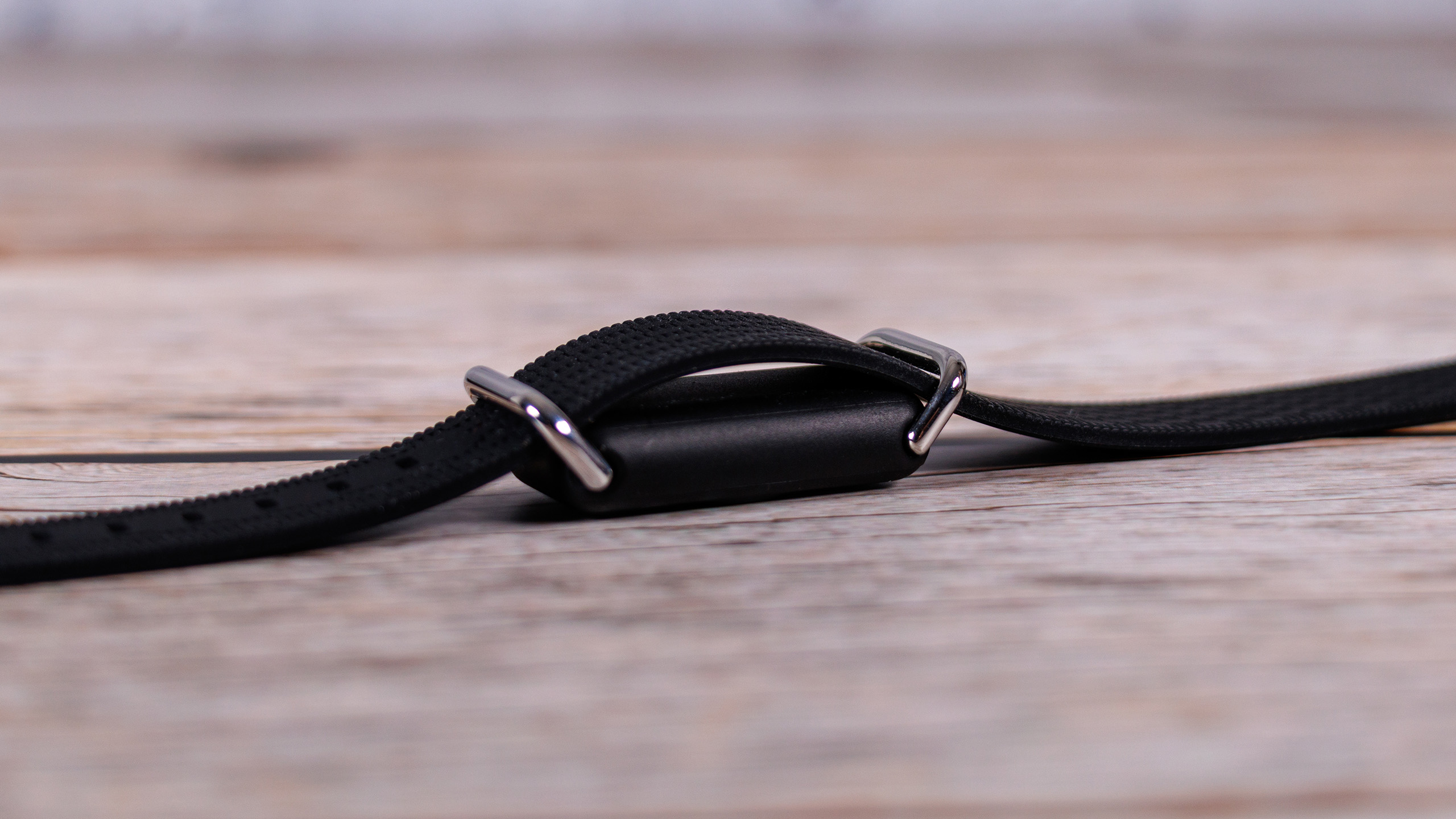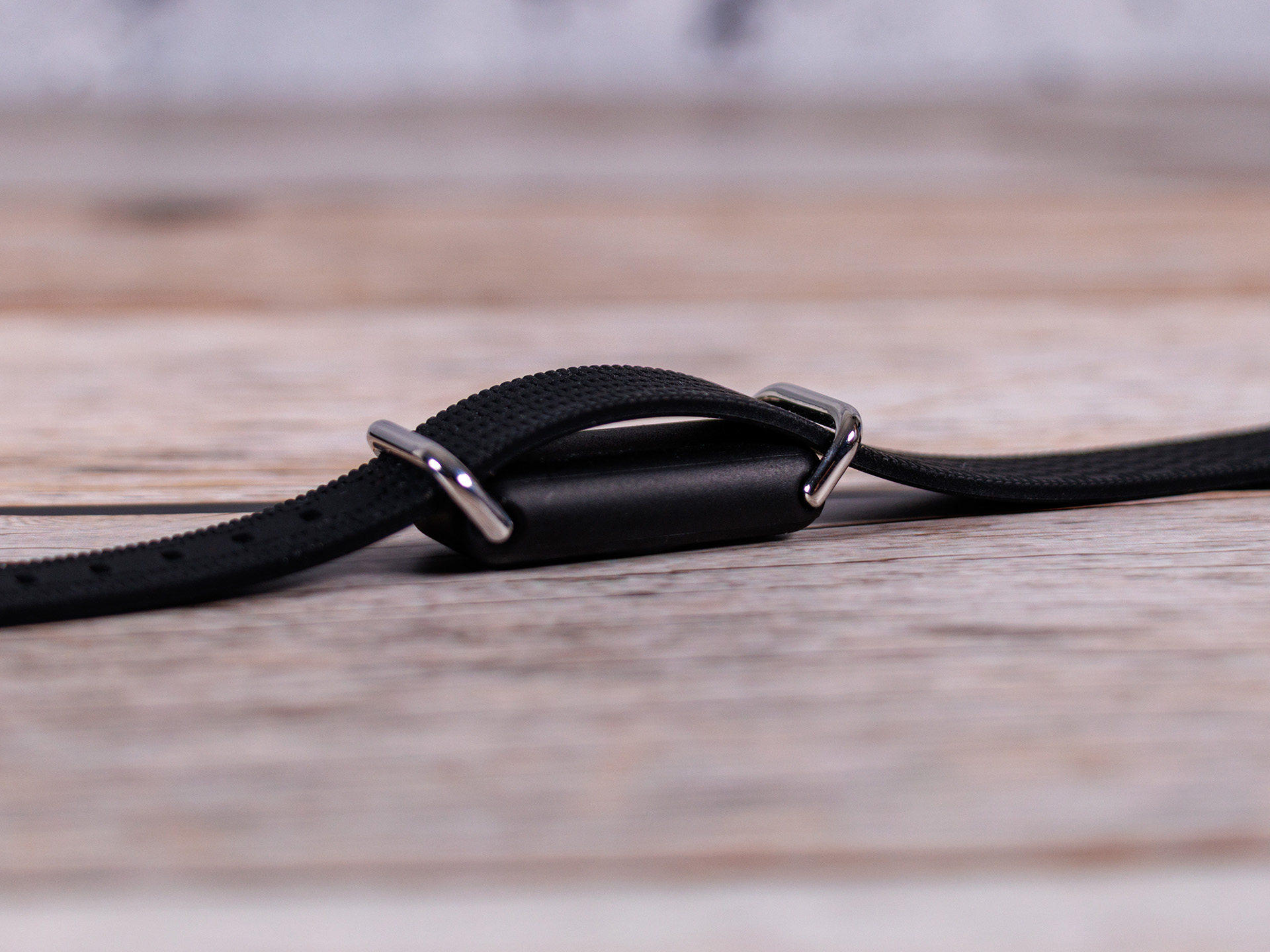 Hilo Band 的外壳由塑料制成,辅以两个不锈钢部件,腕带通过这两个部件穿入腕带。腕带由低过敏性硅胶制成,因此非常亲肤。这种组合既实用、不显眼,又坚固耐用。替换腕带有多种颜色可供选择。