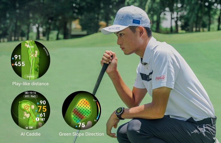 黑色运动表带上有 Honma 徽标和金色表扣。此外,这款智能手表还配有专属的 Honma 表盘。显示屏一如既往地受到蓝宝石玻璃的保护。软件方面,华为 Watch GT 6 Pro 主要增强了新的高尔夫功能,旨在帮助确定理想的击球角度和距离,而所谓的 "AI 球童 "则旨在提供专业提示。