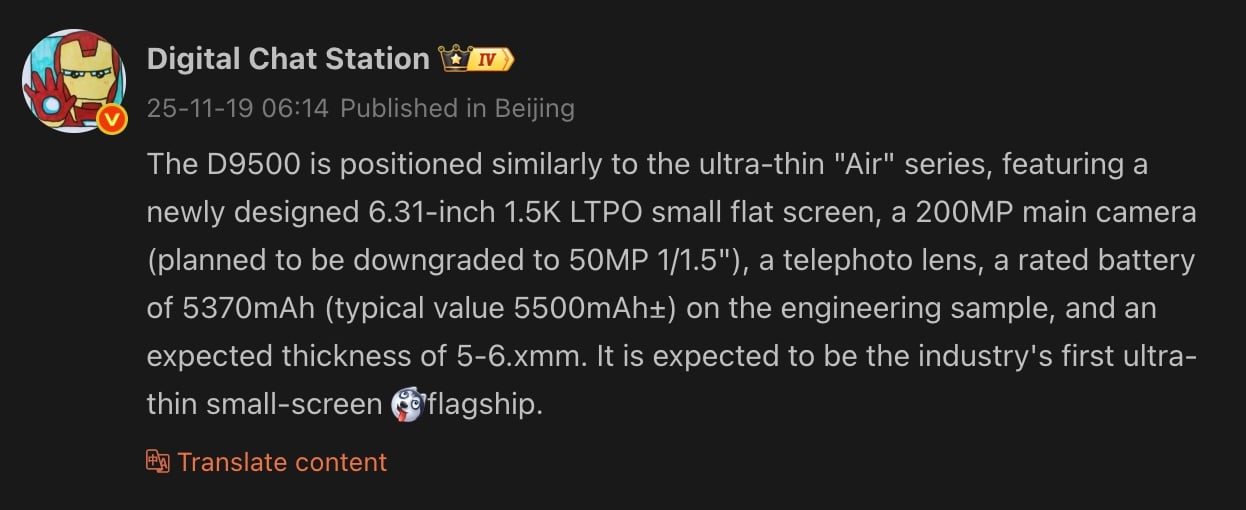 与 之前泄露的Honor Magic 8 Mini 预计将采用 Dimensity 9500 芯片组。不过,纤薄的机身可能会导致电池容量为 5,500mAh 左右。