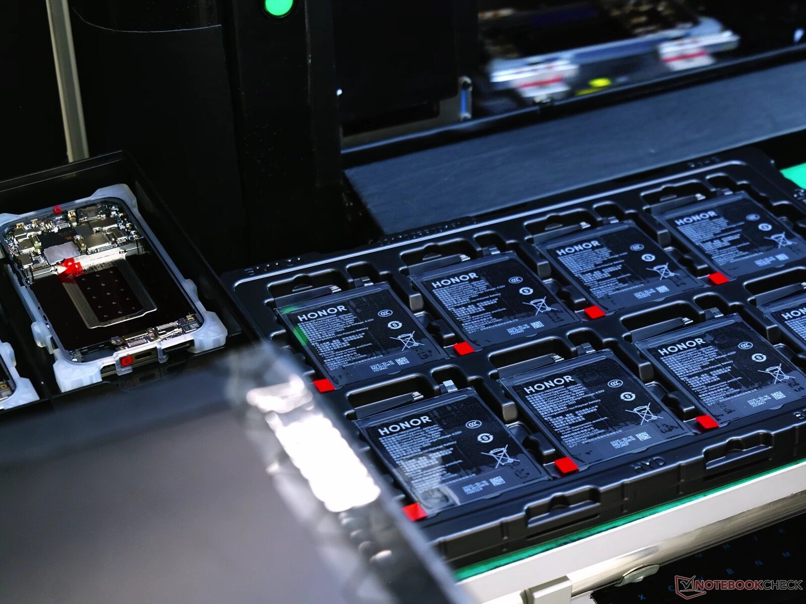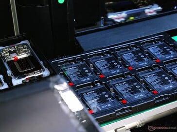 在Honor 的独家工厂参观中,我们看到的不仅仅是常规的营销演示。在中国深圳科技中心的现代化厂房里,我们深入了解了制造过程和测试程序,甚至还获准携带相机。以下是视频中的几张截图。已发布在Notebookcheck 的 YouTube 频道上。.由于展示的电池是常见的单芯电池,欧洲Honor Magic8 型号的电池容量将被限制在 6270mAh 以下,这是因为 具体规定而竞争对手如 一加 15等竞争对手已经升级到了双电池。