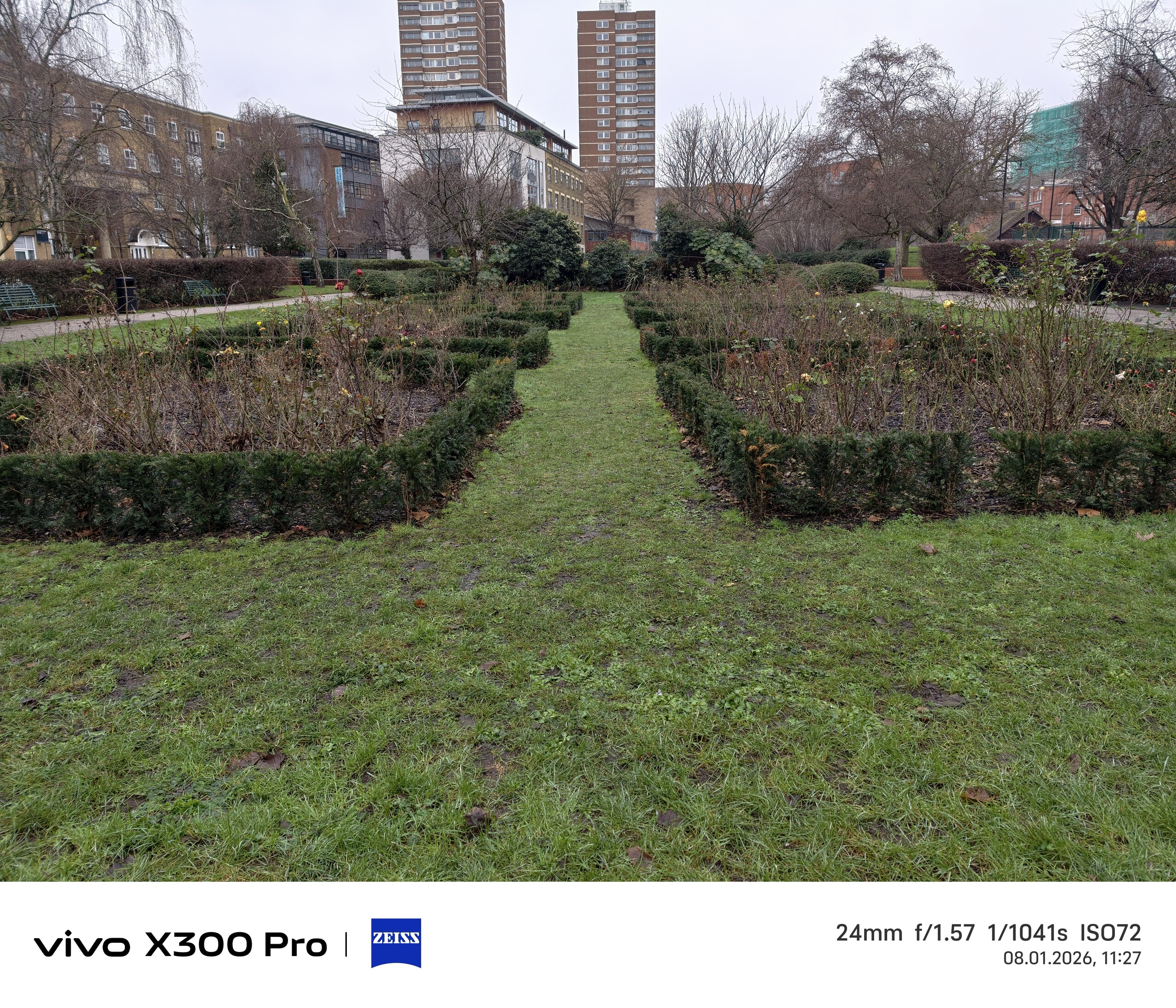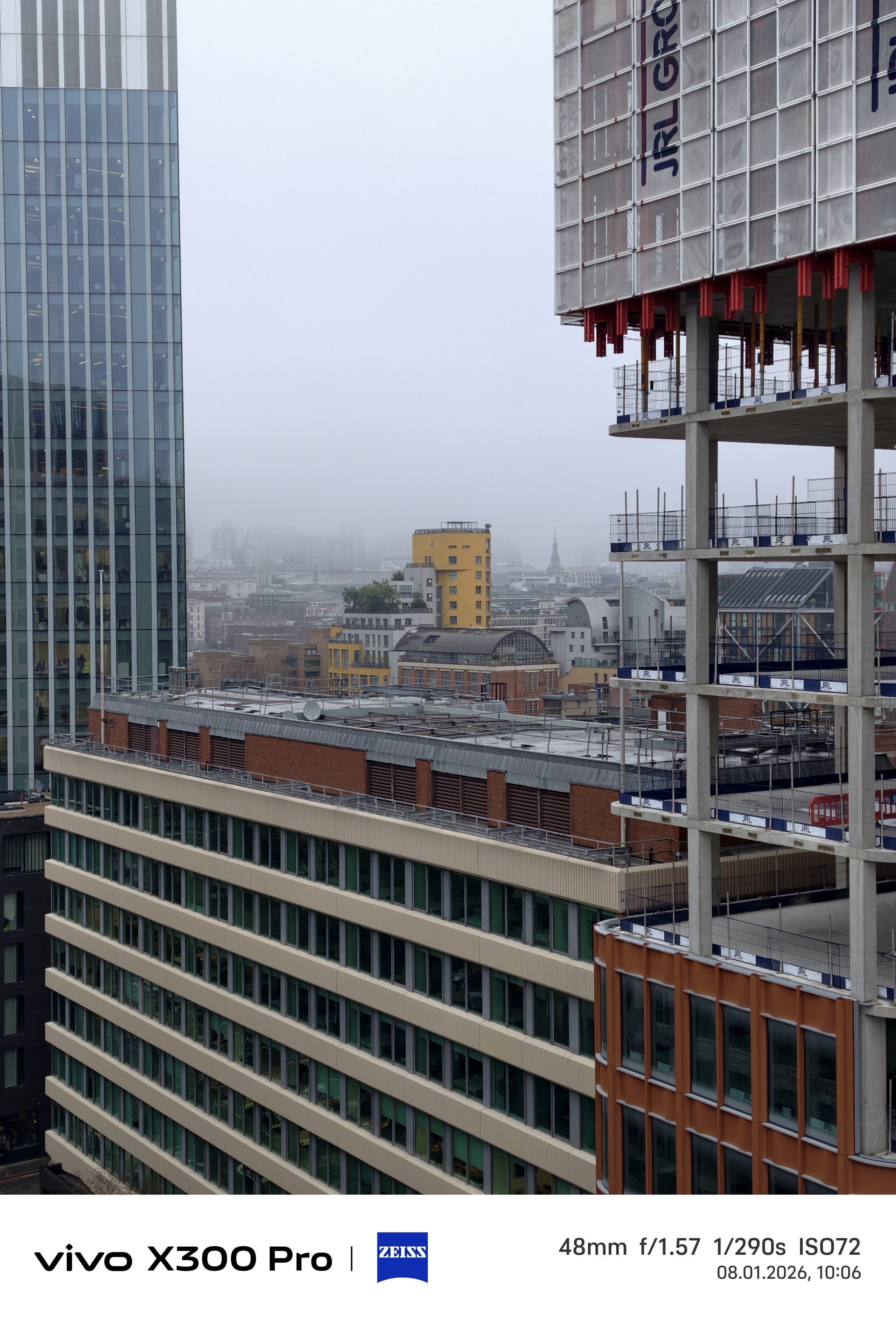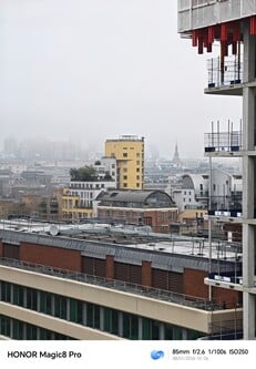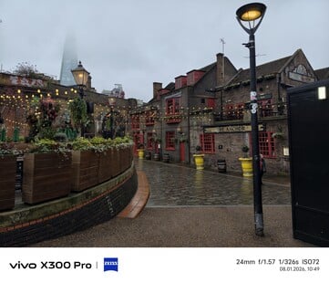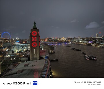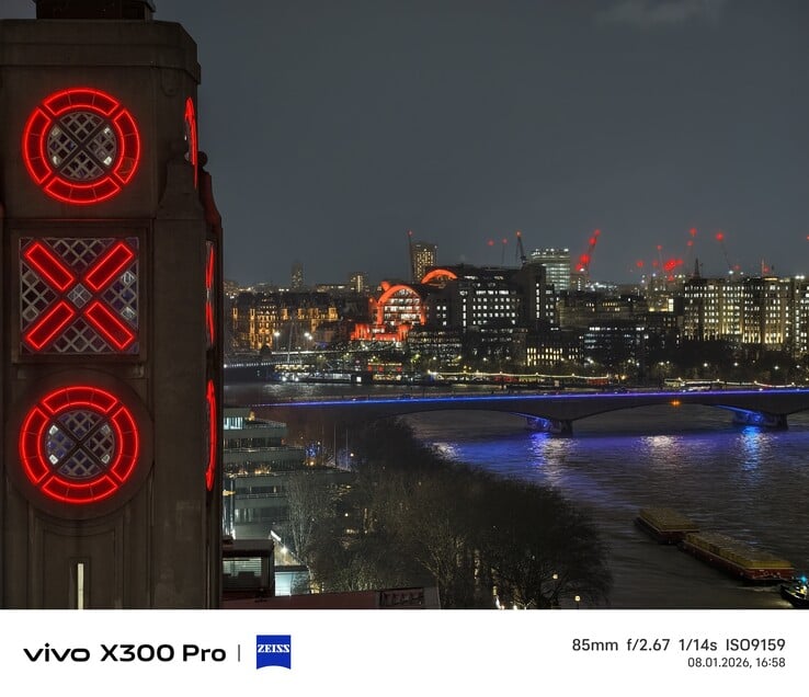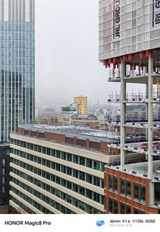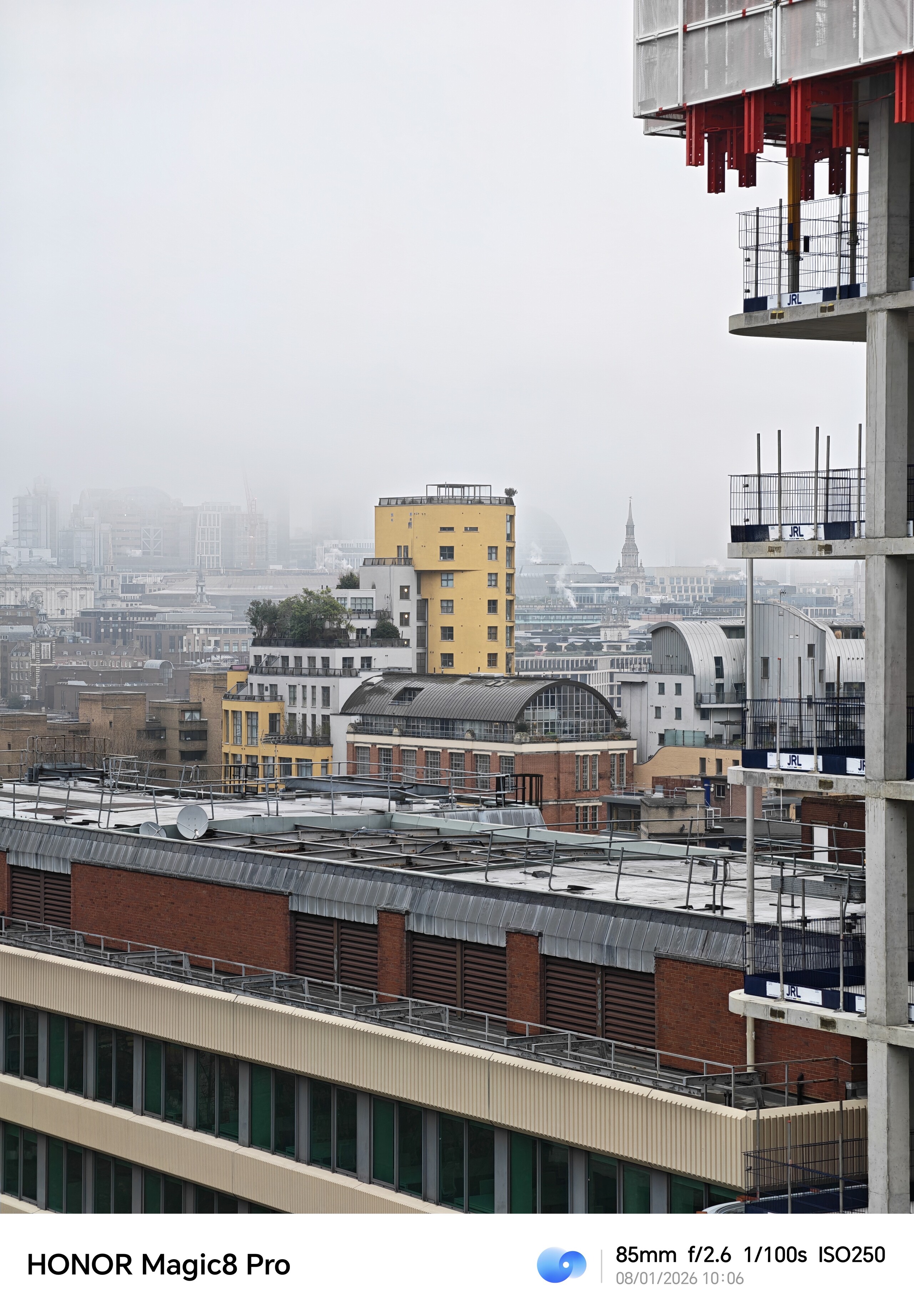 伦敦的天气多云,X300 Pro 的拍摄效果稍好一些,因为图像一般不会变亮。Honor 采用了相反的方法,在整个拍摄过程中对图像进行了大幅增亮,以显示更大的动态范围。在这里,我们希望照片稍微暗一些。遗憾的是,这两款智能手机都只能在专业模式下调整曝光补偿,而且即使这样也不能永久保存。