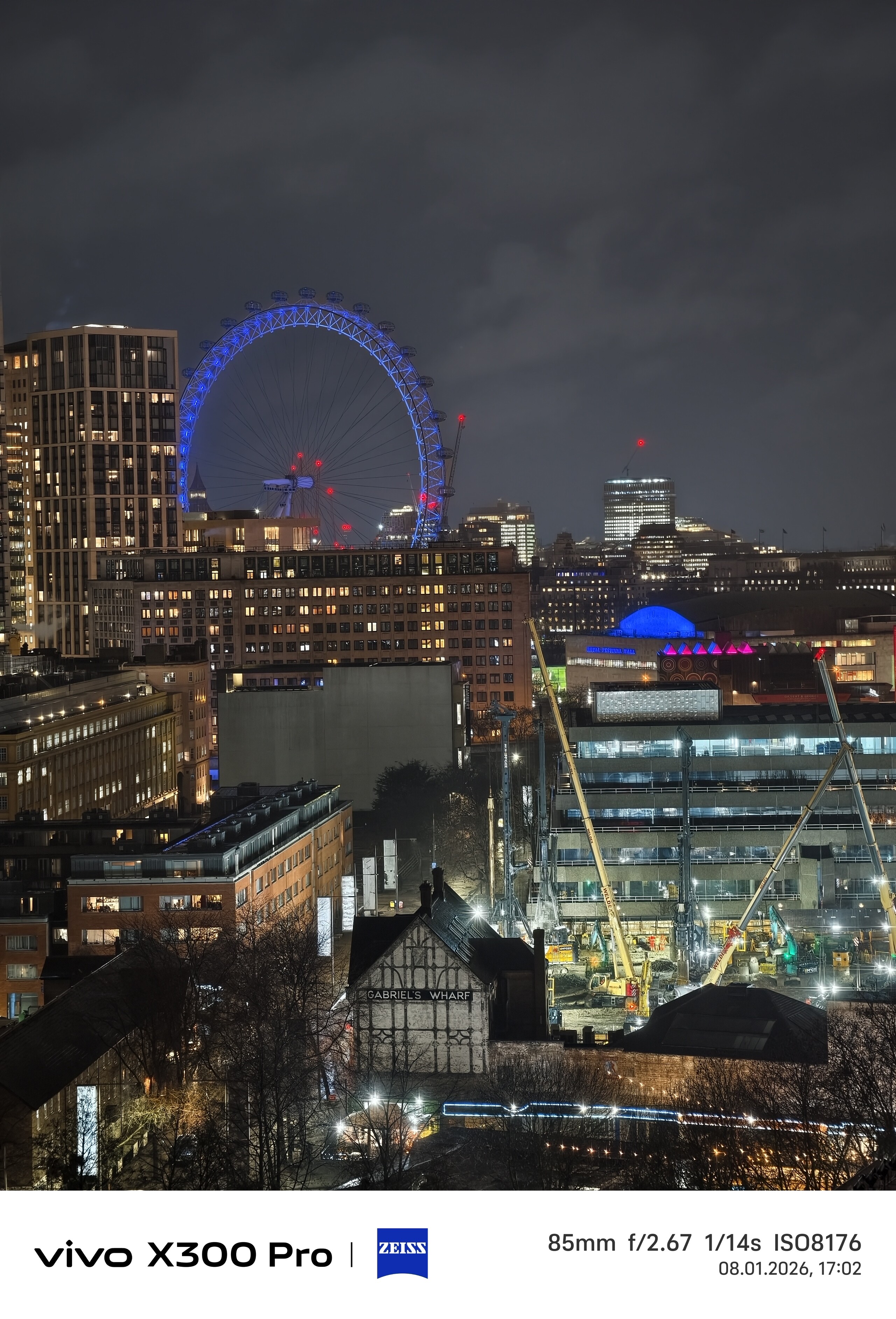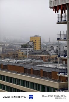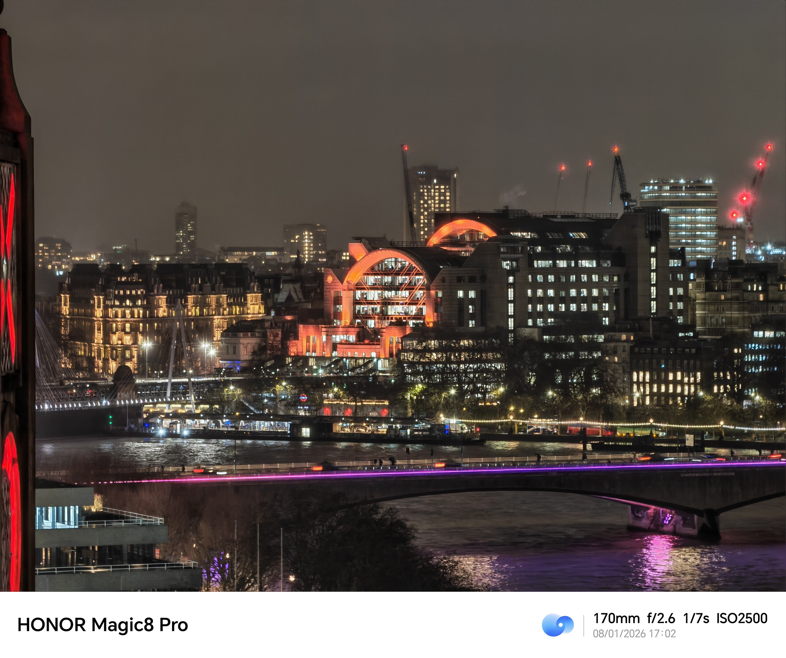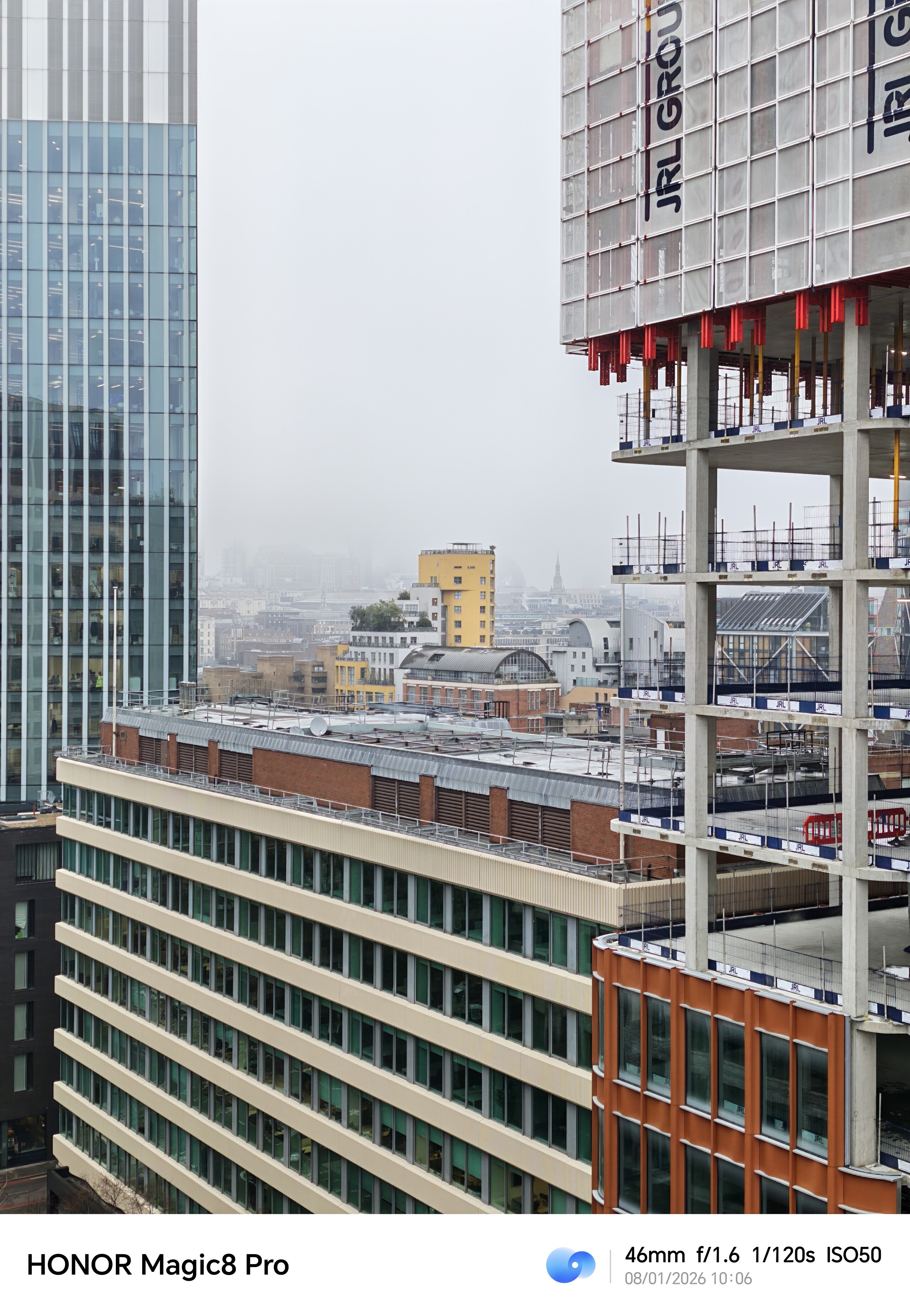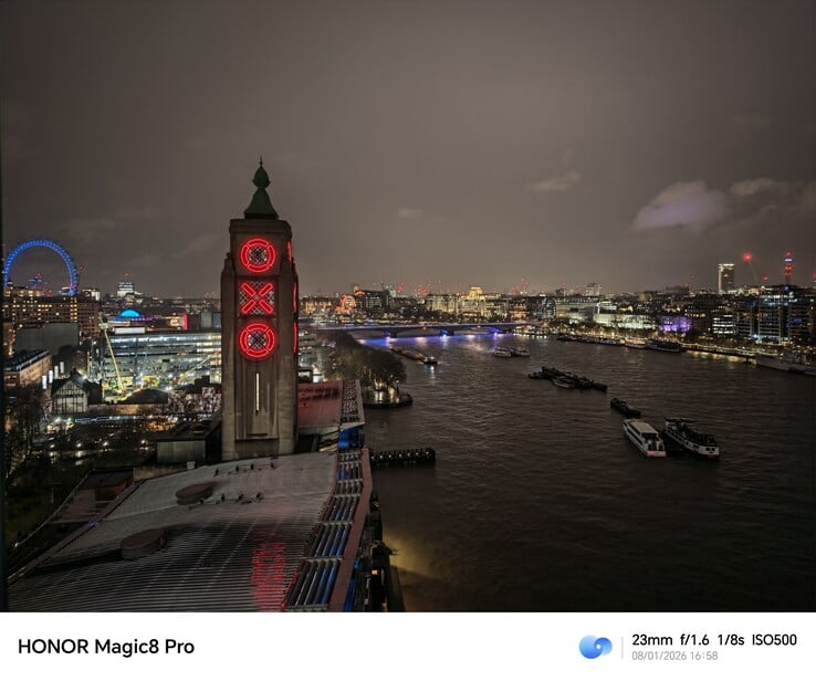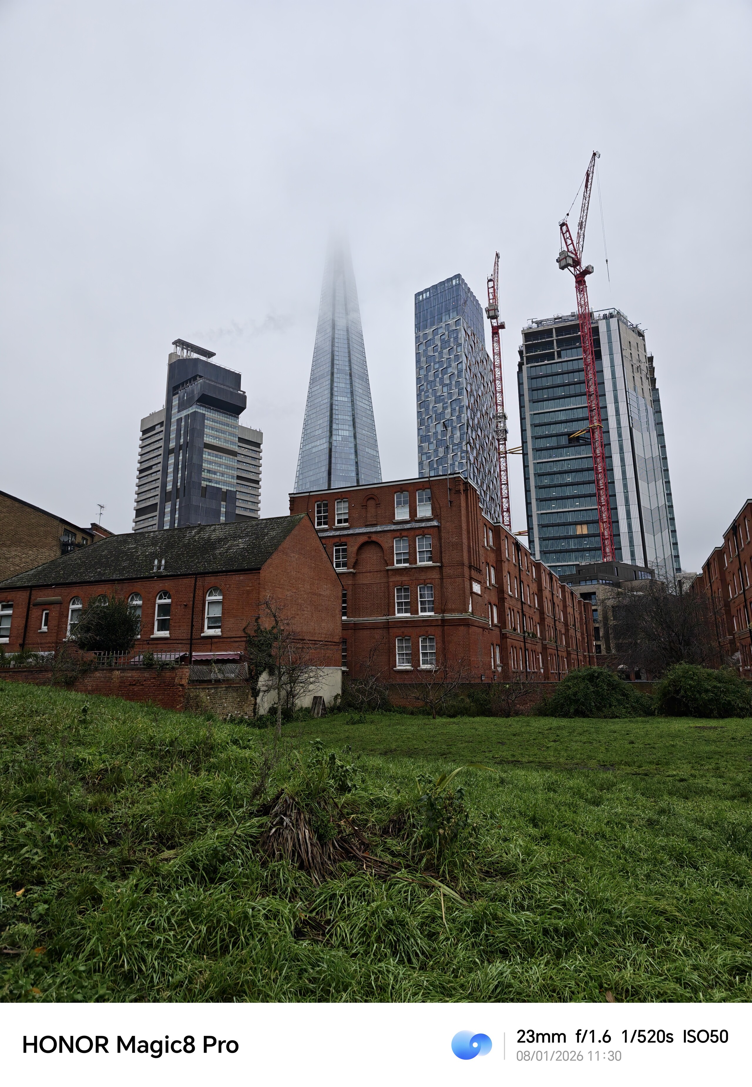 伦敦的天气多云,X300 Pro 的拍摄效果稍好一些,因为图像一般不会变亮。Honor 采用了相反的方法,在整个拍摄过程中对图像进行了大幅增亮,以显示更大的动态范围。在这里,我们希望照片稍微暗一些。遗憾的是,这两款智能手机都只能在专业模式下调整曝光补偿,而且即使这样也不能永久保存。