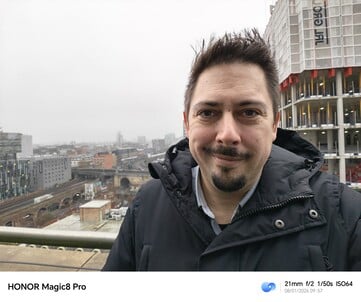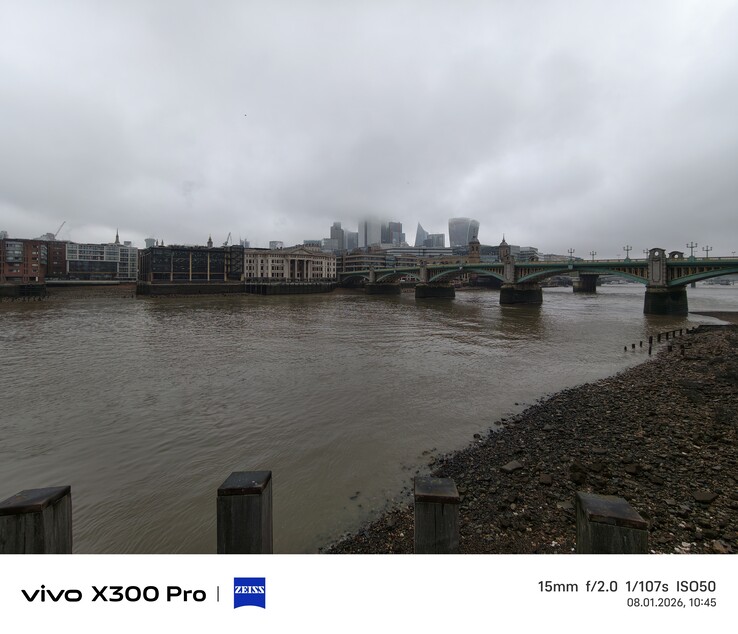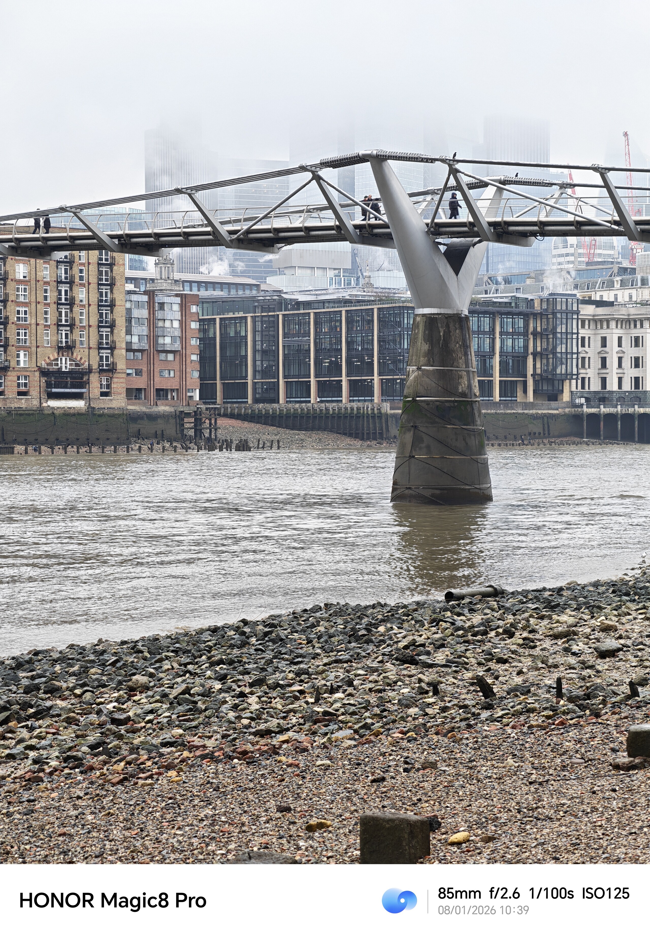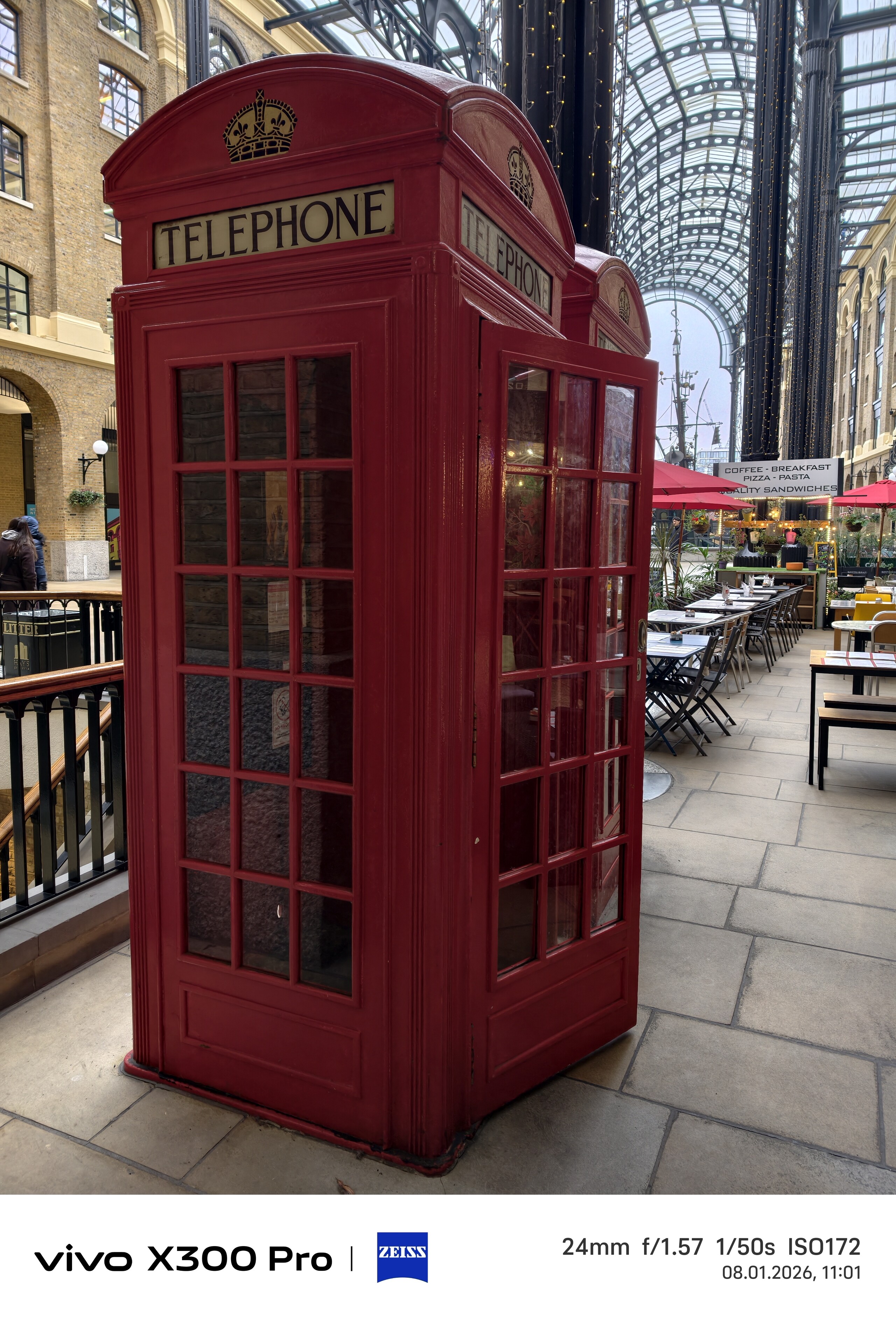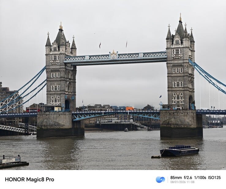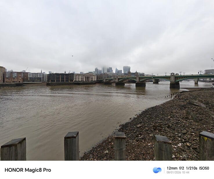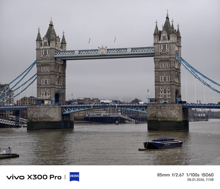 伦敦的天气多云,X300 Pro 的拍摄效果稍好一些,因为图像一般不会变亮。Honor 采用了相反的方法,在整个拍摄过程中对图像进行了大幅增亮,以显示更大的动态范围。在这里,我们希望照片稍微暗一些。遗憾的是,这两款智能手机都只能在专业模式下调整曝光补偿,而且即使这样也不能永久保存。