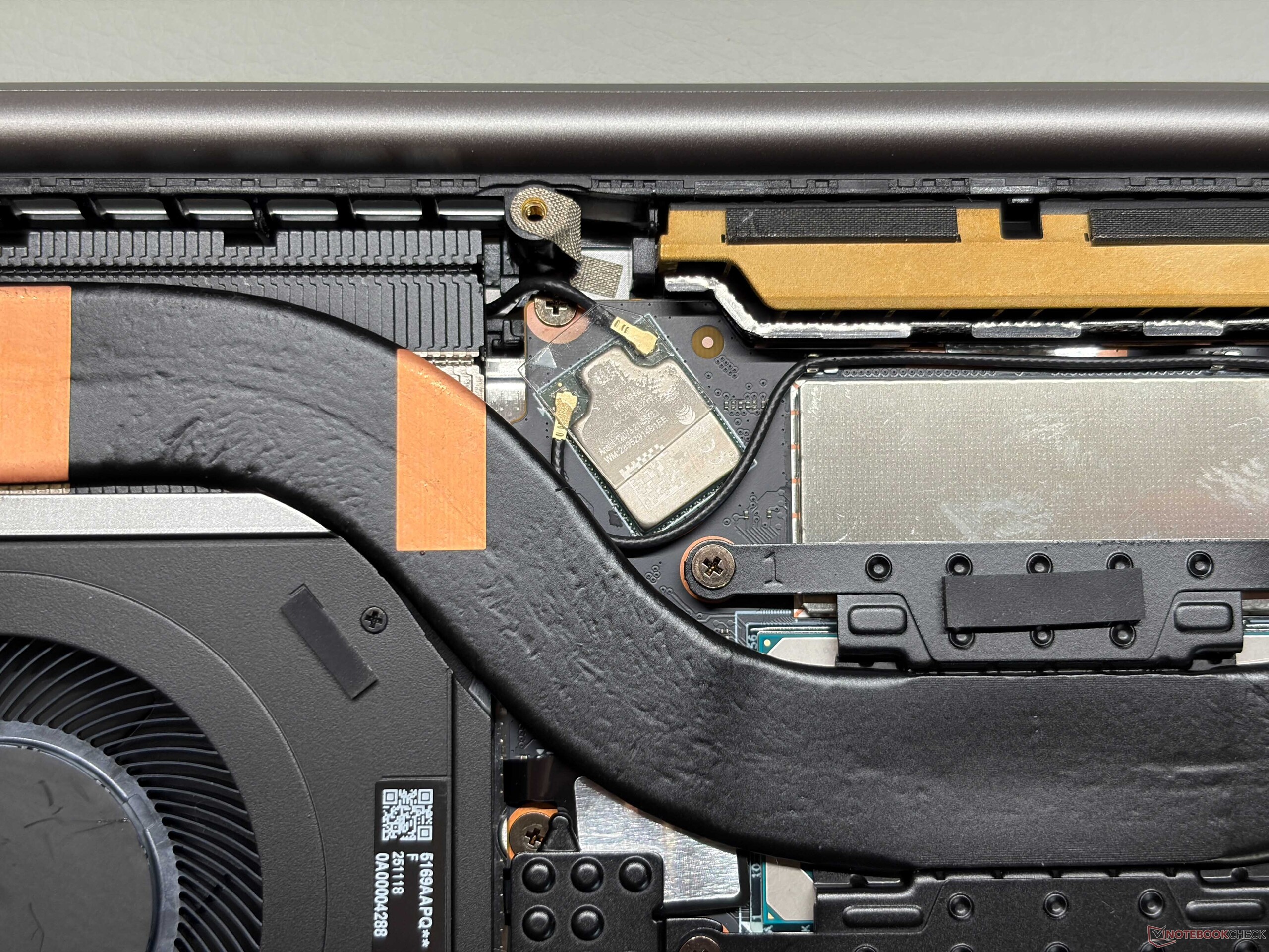 总共有 4 个 USB 端口(1 个 Thunderbolt 4)和 HDMI。Wi-Fi 模块不支持 Wi-Fi 7,但在我们的测试中仍能实现较高且稳定的传输速率。1080p 网络摄像头(包括红外传感器)的拍照效果一般。