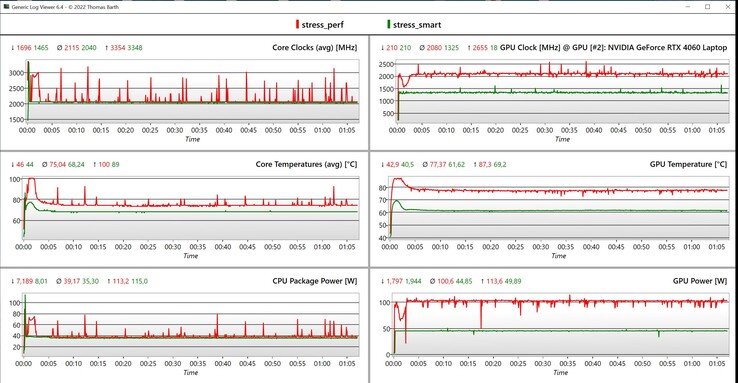 Temperatures in high-performance mode