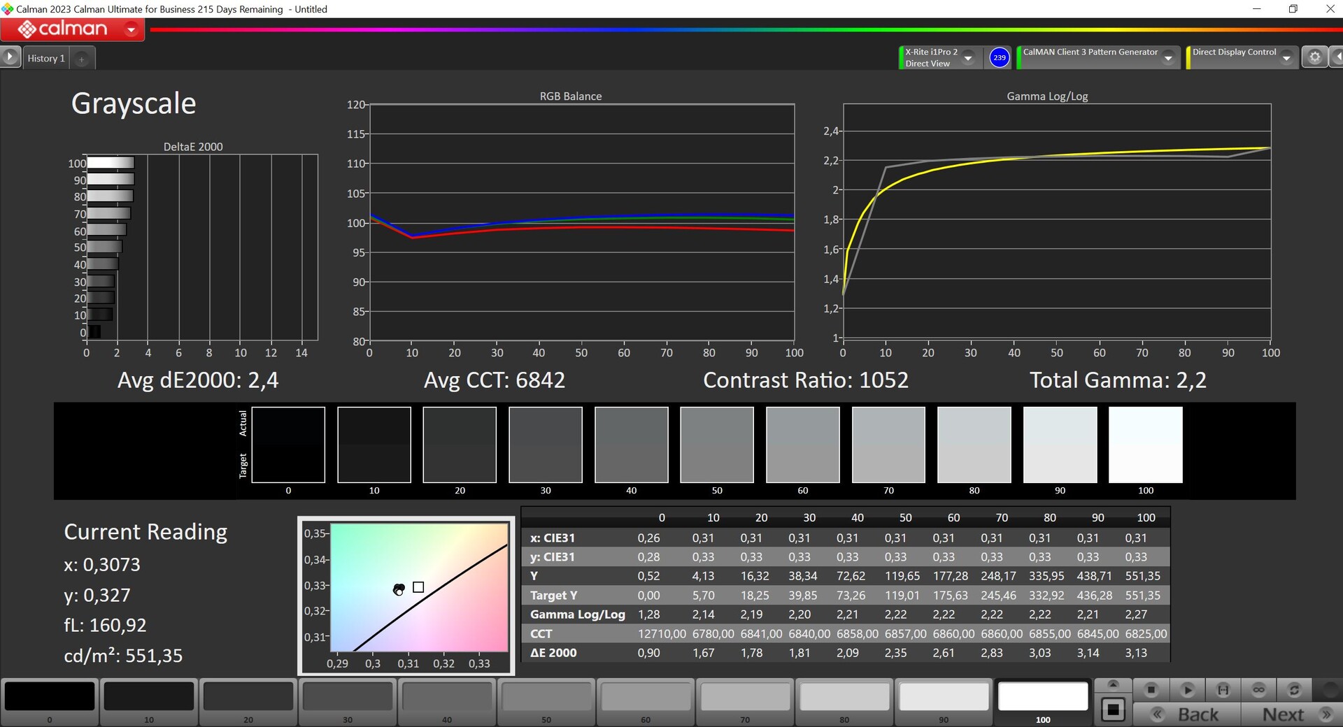 ΔE Greyscale Calman: 2.4 | ∀{0.09-98 Ø5}