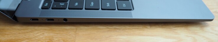 三个USB端口也是相当稀缺的,尤其是在充电或使用笔记本电脑插电时,其中一个可用的Type-C端口必须用于附带的电源适配器。至少两个Type-C端口都支持DisplayPort功能,这意味着理论上最多可以用HDMI端口连接三台显示器。另一个亮点是,其中一个Type-C端口支持Thunderbolt 4/USB 4。该包装由一个组合音频插孔完成。
