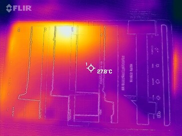 (+) In idle usage, the average temperature for the upper side is 25.6 °C / 78 F, compared to the device average of 30 °C / 86 F.