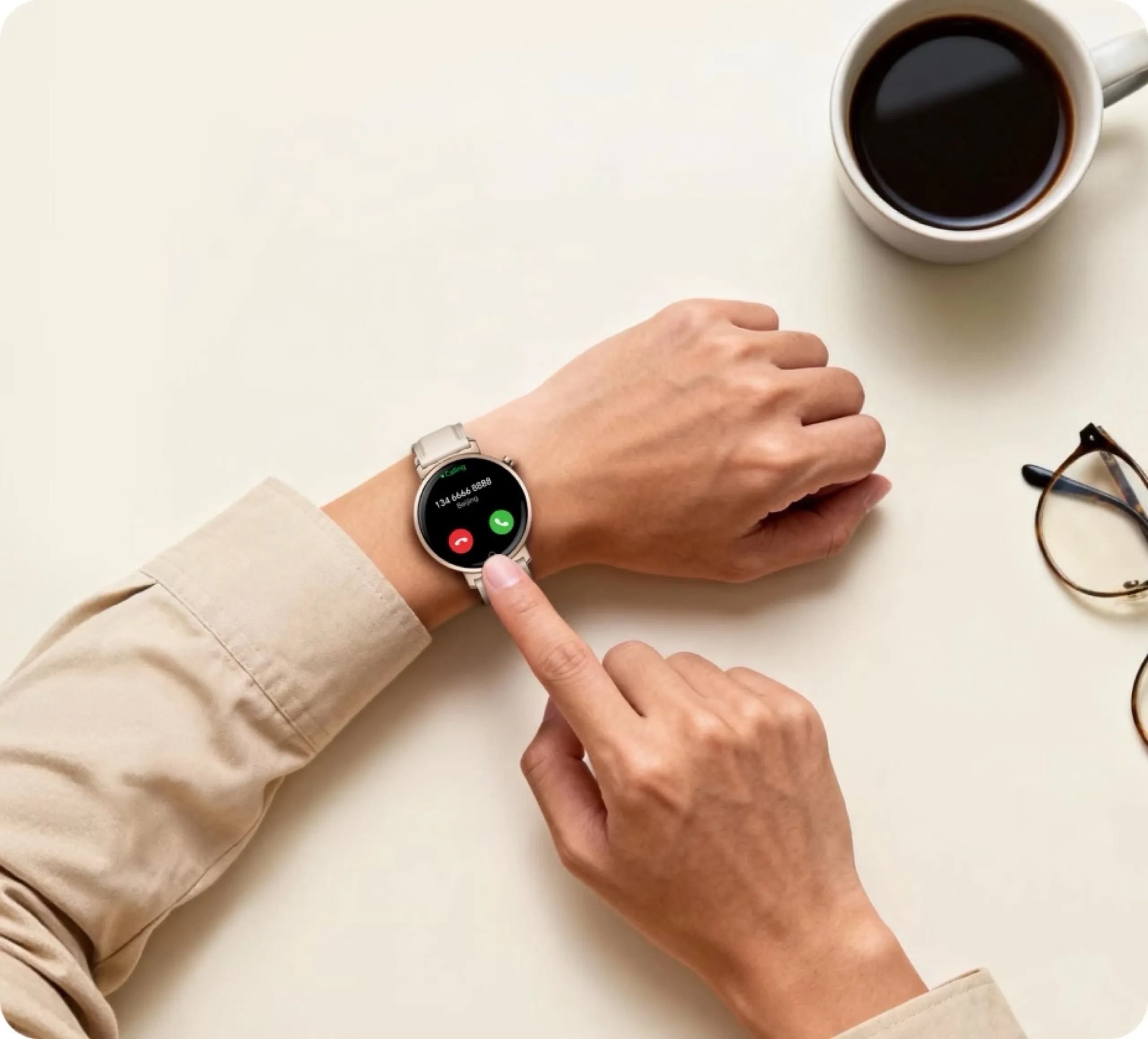 Honor Watch GS 5 是一款低调的圆形智能手表,直径 44 毫米,厚度 9.9 毫米。表圈由铝制成,表底由塑料制成。这款手表仅重 26 克,防水深度达 5 ATM,因此可以在游泳时佩戴。