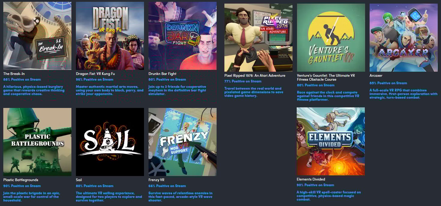 具体来说,该店面推出了一个名为 "超越虚拟现实"(Beyond Virtual Realities)的全新 VR 游戏合集。该合集共有 10 款可在虚拟现实头显(包括即将推出的 Valve Steam Frame)上玩的游戏。这些游戏总价值 158 美元,但购买价格低至 15 美元。下面是关于这些游戏的更多信息: