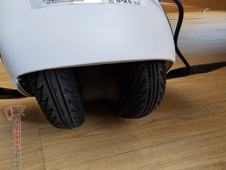 不过,老实说,除了室内地板或水泥地之外,双轮似乎对车辆在其他地形上的行驶并无帮助:它似乎完全不适合碎石或草地,尤其是因为 14 英寸的轮胎是充气轮胎,很容易被东西卡住。