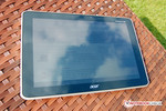 We were excited about the display with a high-resolution of 1920x1200 pixels. While the color reproduction and viewing angles didn't give any cause for complaint, the 'IPS - like' display panel performance was only average in our lab tests. Particularly the low brightness of the display puts a hold on the potential fun of the tablet. Together with the highly reflective glass it makes using the tablet outdoors almost pointless.