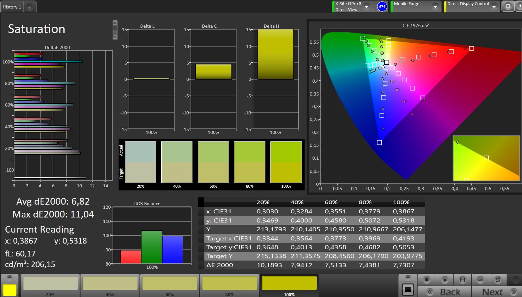 | Colorchecker dE 2000 max. * | 10.91 | 10.38 5% | 11.2 -3% | 11.27 -3% |