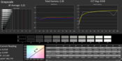 The gray values also remain within a good range. The rate of 5.0 at a brightness of 90% was the biggest outlier. The average gamma rate of 2.3 is acceptable and does not show any bigger outliers. As to color accuracy, the screen shows weaknesses in blue and magenta, which then look like lilac. The blue DeltaE almost reaches 30. It is again these two colors that stand out adversely in color saturation.
