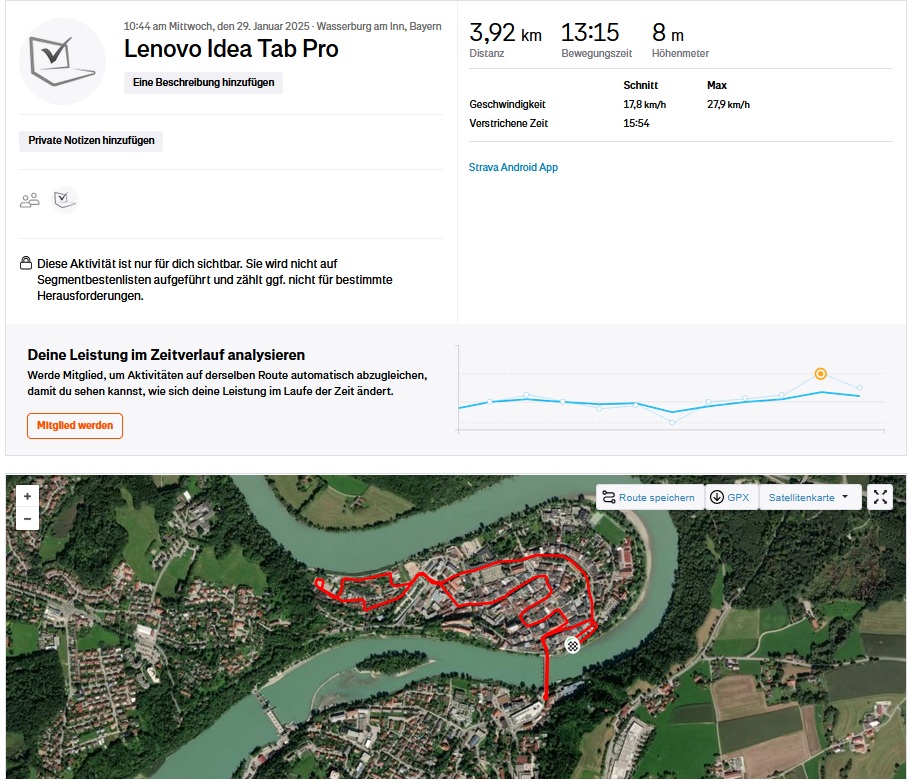 总的来说,我们喜欢 Idea Tab Pro 记录的路线。它并不总是百分之百准确,有时似乎会穿过建筑物,但总的来说,我们可以说它足以满足导航的需要。只有那些重视绝对精确度的用户才应该选择其他设备。