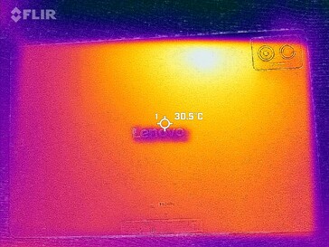 (+) The maximum temperature on the upper side is 34.3 °C / 94 F, compared to the average of 33.7 °C / 93 F, ranging from 20.7 to 53.2 °C for the class Tablet.