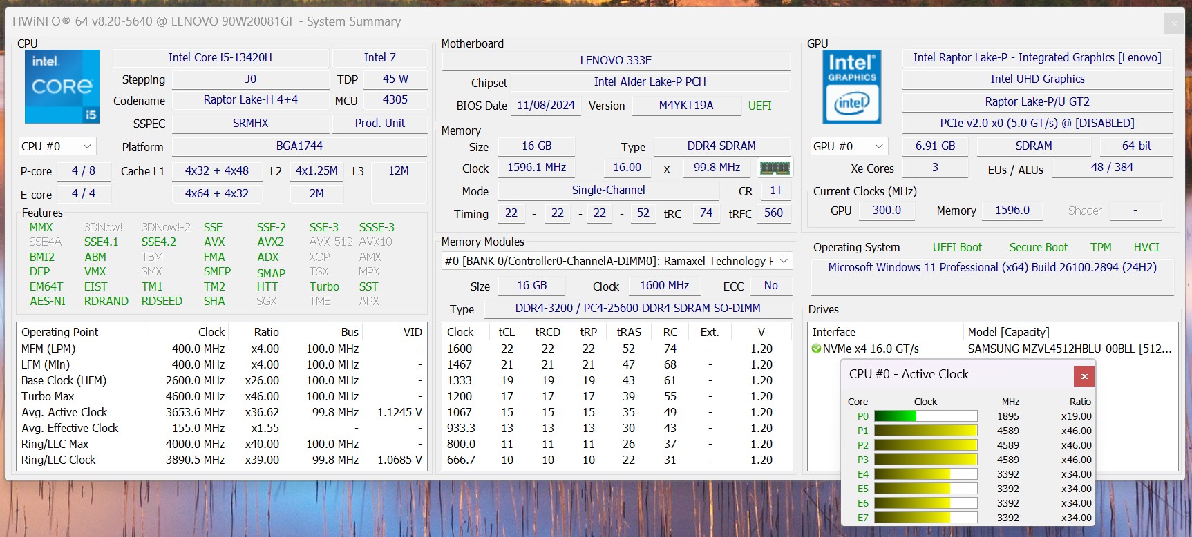 性能 - 酷睿 i5-13420H,带 P 核和 E 核
