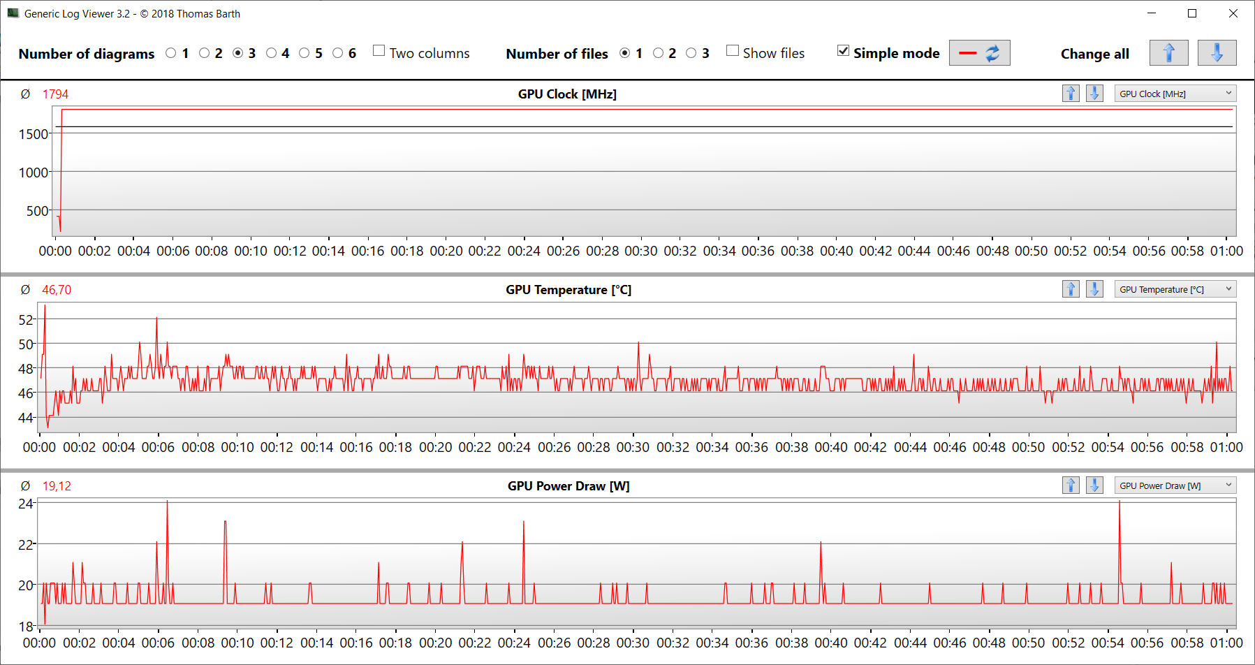 对于这里安装的硬件来说,耗电量处于正常水平。虽然Witcher 3 测试是以恒定的功耗运行的,但在压力测试的过程中,需求略有下降。所提供的电源(65瓦)的大小足够了。