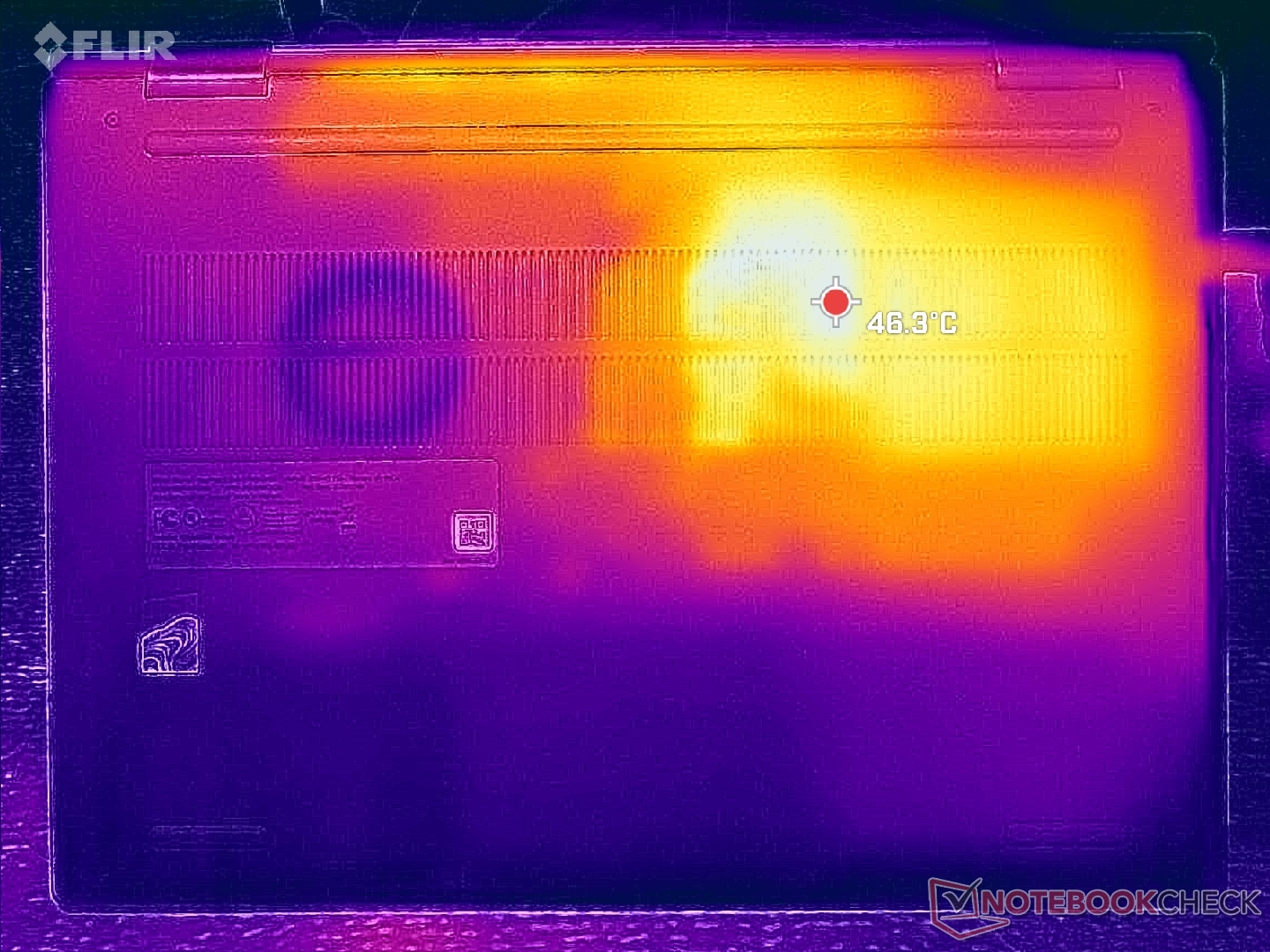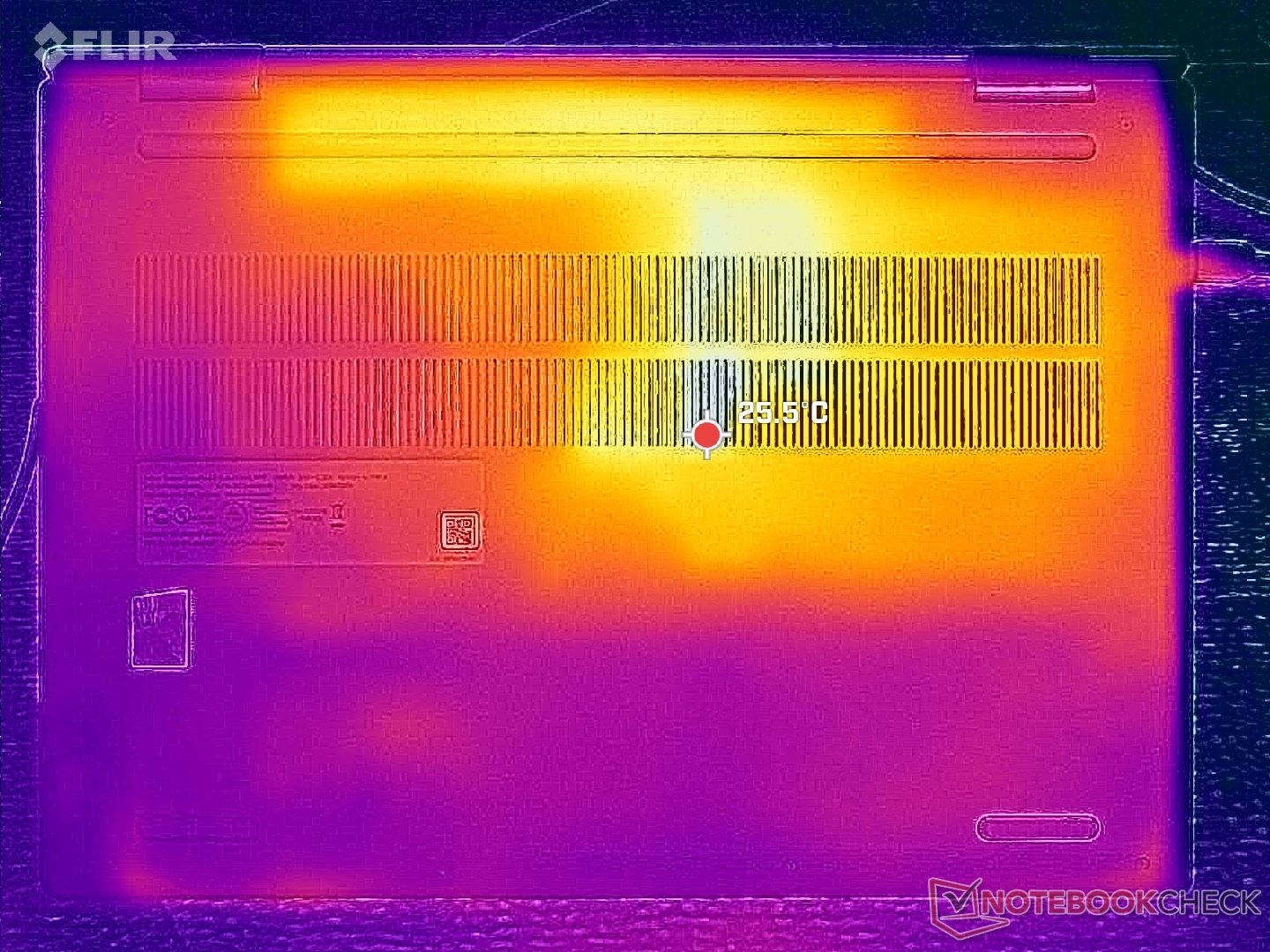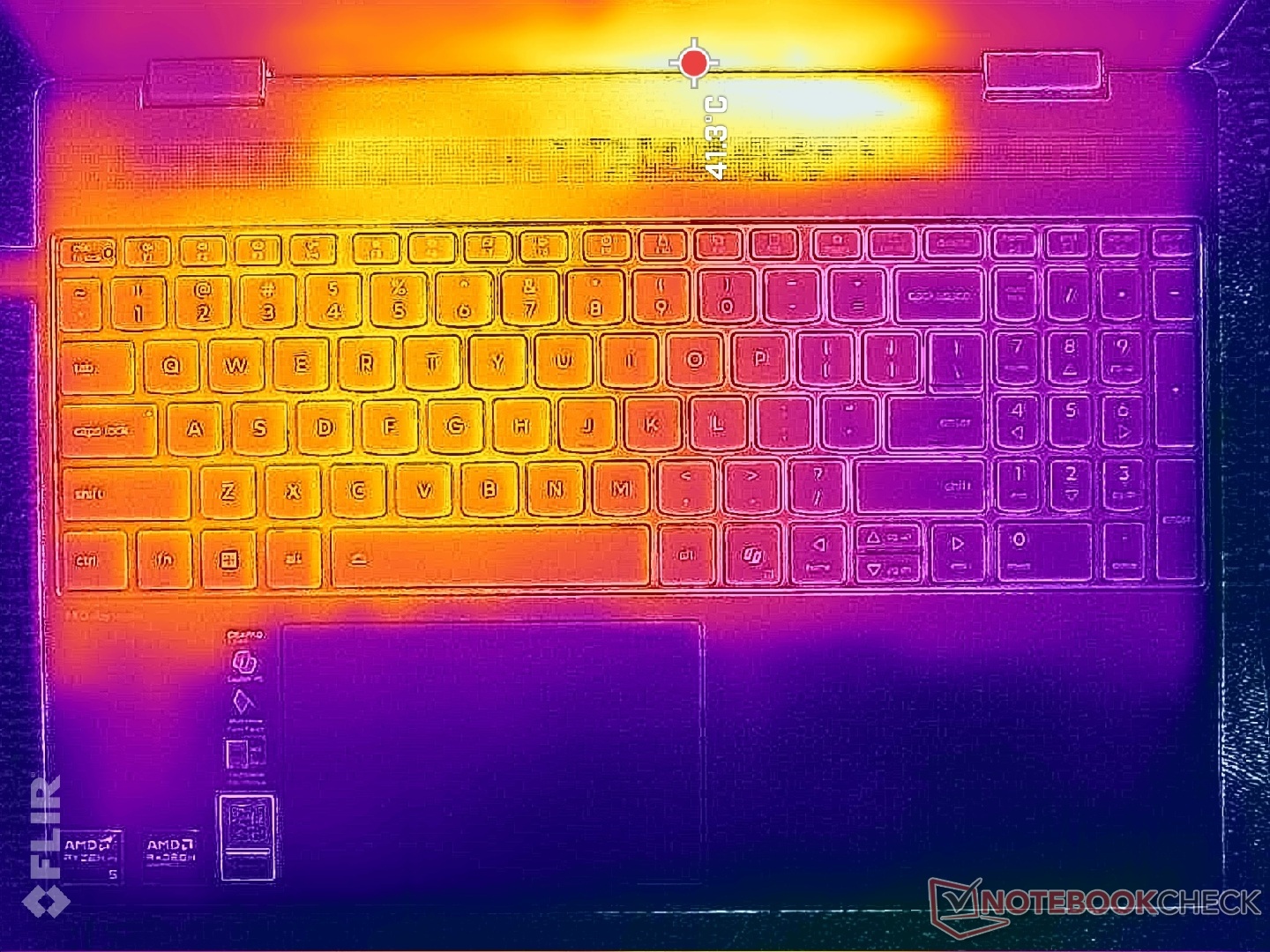 (+) The palmrests and touchpad are cooler than skin temperature with a maximum of 26.8 °C / 80.2 F and are therefore cool to the touch.