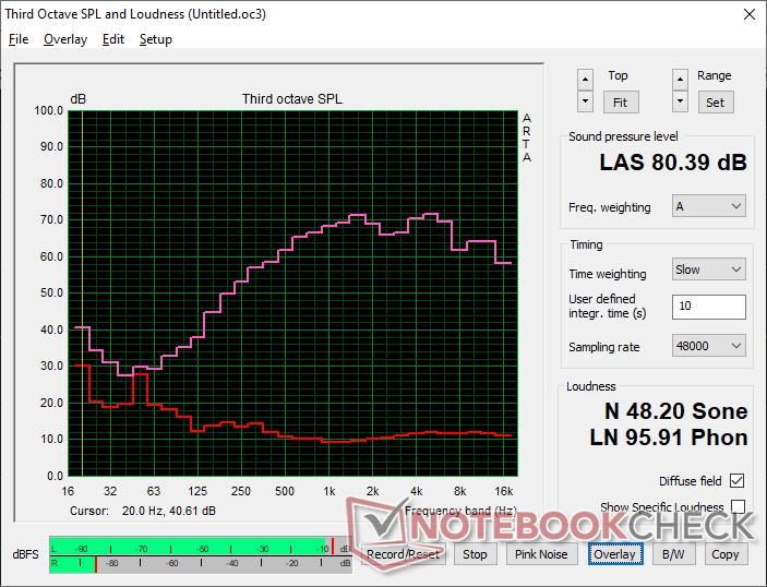 (±) | speaker loudness is average but good (80.4 dB)