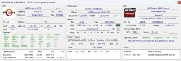 | Lenovo IdeaPad 5 2-in-1 15AGP11 AMD Ryzen AI 5 430 ⎘ AMD Radeon 840M ⎘ 16 GB Memory | List Price: 800 USD | 1.8 kg | 17.6 mm | 15.30" 1920x1200 148 PPI IPS | |