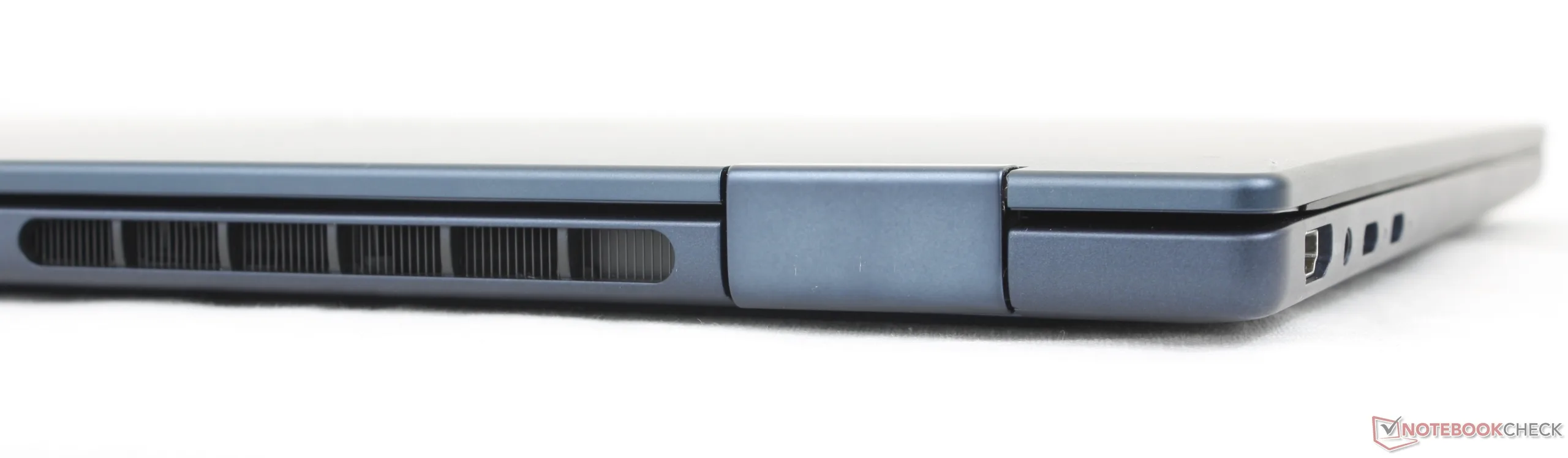 虽然端口选项多种多样,但它们的位置却参差不齐。所有端口都挤在一起,右侧边缘没有 USB-C 端口,这就限制了充电和显示输出只能在左侧边缘进行。