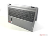 底座很结实,只有顶部的中间区域可以明显弯曲。然而,这在打字时没有任何问题。显示屏盖非常稳定,我们只能通过大量的选择性压力来产生轻微的弯曲。两个铰链都很紧,很难用一只手打开盖子,但同时,当你移动它时,显示屏也会晃动得很厉害。作为一个二合一产品,整个显示屏可以折叠。这样做时,输入设备会自动关闭。该设备的重量略高于2公斤,作为平板电脑使用时并不特别舒适。所提供的手写笔不能存放在设备内,但由于有一个小适配器,它可以被固定在一个USB-A端口上(尽管这也阻碍了其他端口)。