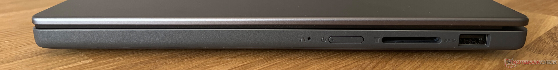 它的维护选项总体不错--有一个内存插槽和一个空闲的固态硬盘插槽(M.2-2242)。必要时还可以更换 WLAN 模块和电池。说到连接,你只能尽量少用,只有一个 USB-C 接口。不过,这款笔记本电脑使用的是专用充电端口。它的 200 万像素网络摄像头拍照效果不是特别好,但支持 Windows Studio 特效,而且有一个机械快门。此外,它还支持面部识别功能。它不是 Copilot+ 笔记本电脑,但可以提供实时字幕。