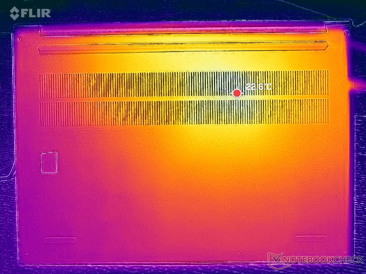 (+) The palmrests and touchpad are cooler than skin temperature with a maximum of 26.6 °C / 79.9 F and are therefore cool to the touch.
