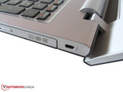 However, the biggest point of criticism is the lack of stability. While the bottom plate fares fairly well, the keyboard gives in to pressure during normal usage. This is also applicable to the area around the optical drive.